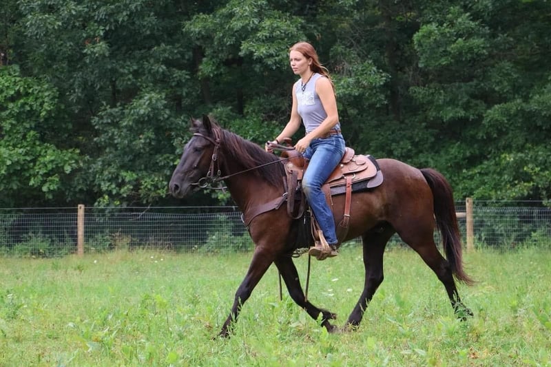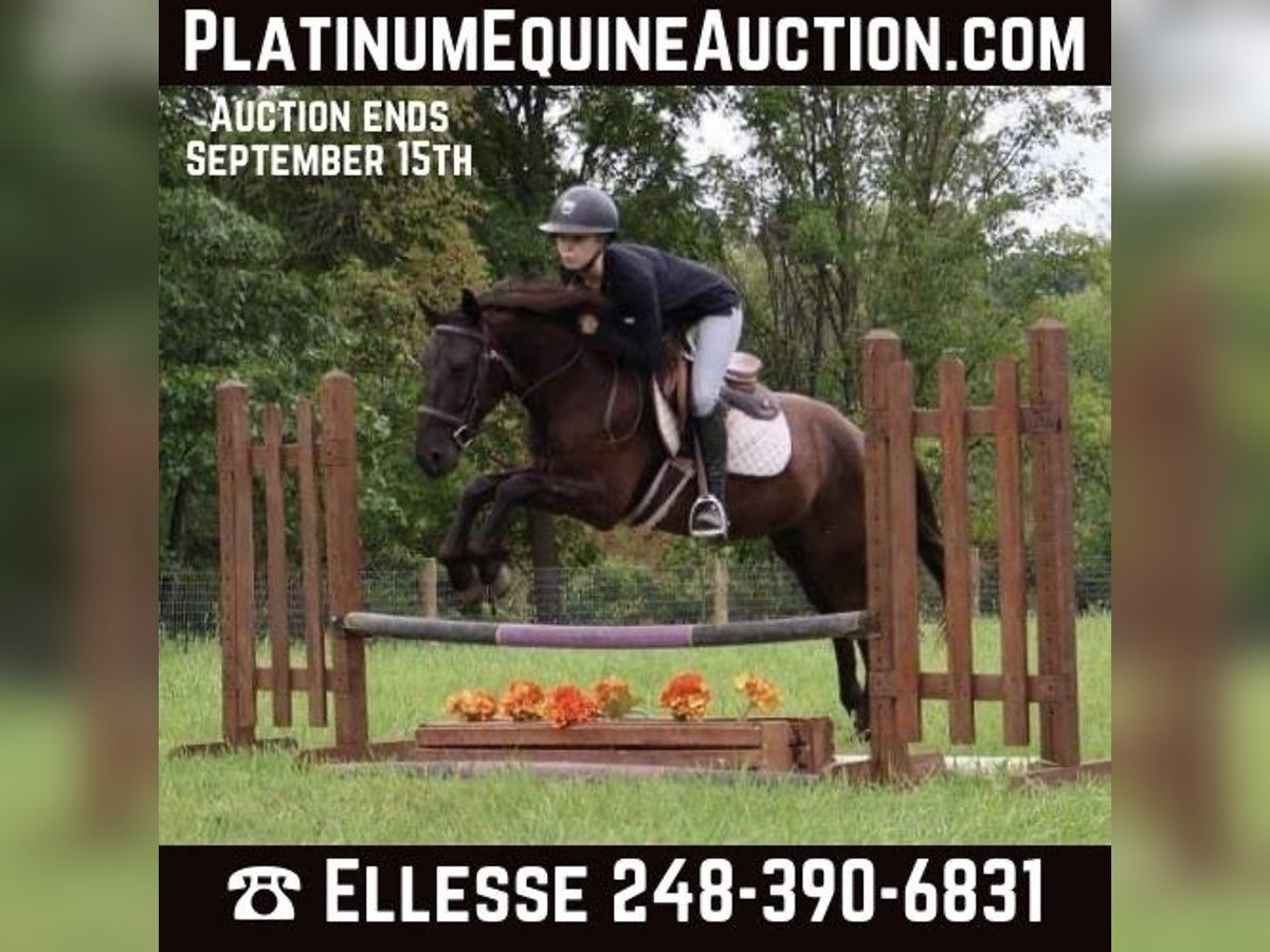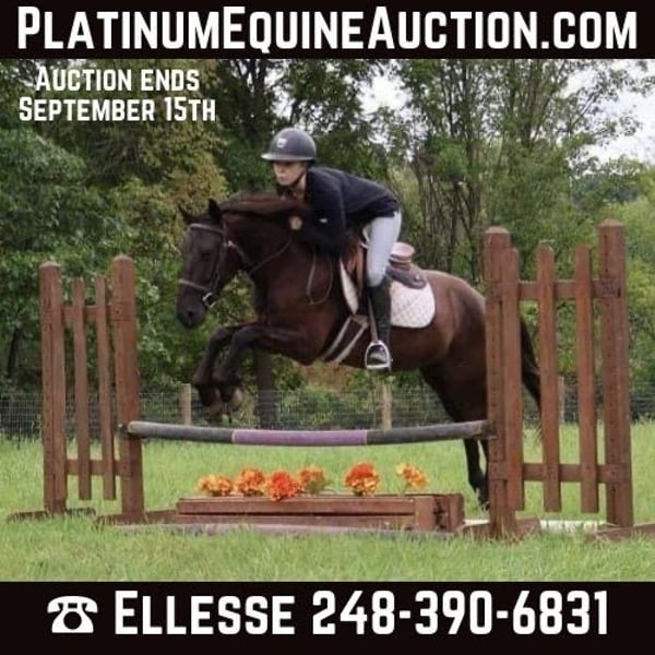 ONLINE AUCTION Place your bids at www.PlatinumEquineAuction.com Starting Bid $3500 Auction ends September 15th, 2024 Need a new saddle? Check out White Rock Saddles on our website or Facebook! If you’re looking for quiet, safe, and bombproof then you need to take a look at Tar! Tar is 6 years old, Friesian/Welsh Cross that stands 14hh. Tar has the mind and disposition of a 20 year old horse. He is calm, gentle, and one you can throw anyone on! He is more whoa than go which makes him great for the beginner riders and timid kids. Tar rides both English and western in any bit or with just a halter and lead rope. He has a lovely trot and rocking-horse type canter. His transitions both upwards and downwards are great! Say the word “whoa” and tar comes to a stop. This summer Tar was used in our lesson program teaching riders of all ages, sizes, and abilities! He also worked in several of our horse camps giving lessons, bareback rides, standing to be painted, and other fun activities. Tar has been lightly started over fences, and can jump around a course with flying changes. Tar has been jumping anywhere from cross-poles to 2’3”. Tar joined us at a 4H horse show and competed in showmanship, huntseat, western, trail, and some gymkhana classes! Tar truly is the definition of an all-around pony! He can and will do anything you ask of him! Located in Howell Michigan 48855. Call Ellesse Schwartz for more information 248-390-6831. ONLINE AUCTION Place your bids at www.PlatinumEquineAuction.com Starting Bid $3500 Auction ends September 15th, 2024 Need a new saddle? Check out White Rock Saddles on our website or Facebook!