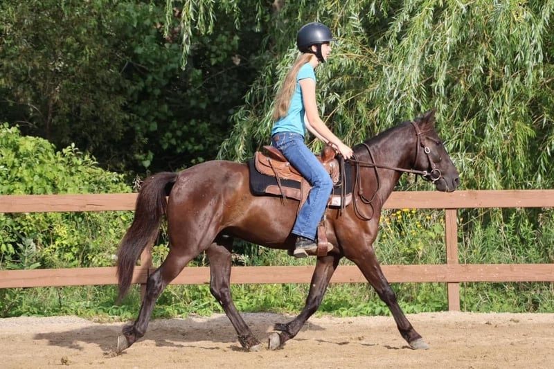 ONLINE-AUKTION Geben Sie Ihre Gebote unter www.PlatinumEquineAuction.com ab. Startgebot $3500 Die Auktion endet am 15. September 2024 Brauchen Sie einen neuen Sattel? Schauen Sie sich White Rock Saddles auf unserer Website oder Facebook an! Wenn Sie auf der Suche nach einem ruhigen, sicheren und bombensicheren Sattel sind, dann sollten Sie einen Blick auf Tar werfen! Tar ist 6 Jahre alt, ein Friesen/Welsh Cross mit einem Stockmaß von 14h. Tar hat den Verstand und die Veranlagung eines 20 Jahre alten Pferdes. Er ist ruhig, sanft und ein Pferd, auf das man jeden werfen kann! Er ist mehr "whoa" als "go", was ihn für Reitanfänger und schüchterne Kinder geeignet macht. Tar reitet sowohl Englisch als auch Western mit jedem Gebiss oder nur mit Halfter und Führstrick. Er hat einen schönen Trab und einen schaukelpferdartigen Galopp. Seine Übergänge sowohl nach oben als auch nach unten sind großartig! Sagen Sie das Wort "whoa" und Tar kommt zum Stillstand. In diesem Sommer wurde Tar in unserem Unterrichtsprogramm eingesetzt, um Reitern jeden Alters, jeder Größe und jedes Könnens etwas beizubringen! Er war auch in mehreren unserer Pferdecamps im Einsatz, wo er Unterricht gab, ohne Sattel ritt, zum Malen stand und andere lustige Aktivitäten machte. Tar wurde leicht über Hindernisse geritten und kann mit fliegenden Wechseln durch einen Parcours springen. Tar springt von Querstangen bis hin zu 2'3". Tar nahm mit uns an einem 4H-Pferdeturnier teil und bestritt Showmanship-, Huntseat-, Western-, Trail- und einige Gymkhana-Klassen! Tar ist wirklich die Definition eines Allround-Ponys! Er kann und wird alles tun, was Sie von ihm verlangen! Er befindet sich in Howell Michigan 48855. Rufen Sie Ellesse Schwartz für weitere Informationen 248-390-6831. ONLINE-AUKTION Geben Sie Ihre Gebote unter www.PlatinumEquineAuction.com ab. Startgebot $3500 Die Auktion endet am 15. September 2024. Brauchen Sie einen neuen Sattel? Schauen Sie sich White Rock Saddles auf unserer Website oder Facebook an!