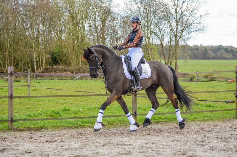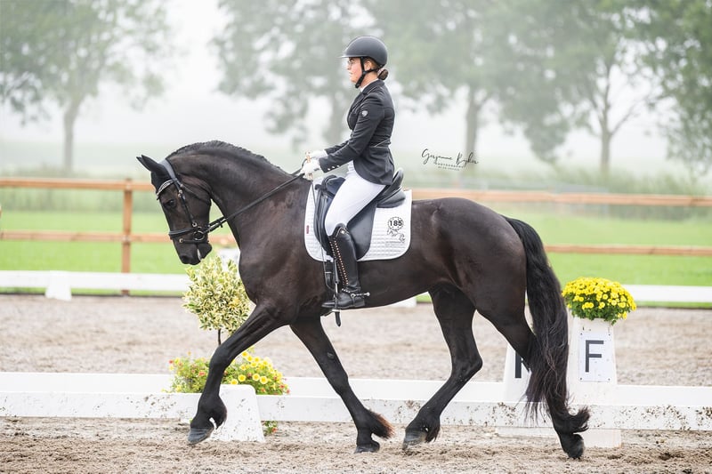 Haiko is een prachtige 8-jarige Friese ruin met een stokmaat van 1.68 m. Zijn afstamming is bijzonder interessant: hij is een zoon van Tsjalle 454, met Thorben 466 als moedersvader. Deze indrukwekkende verschijning combineert schoonheid met karakter. Haiko is eerlijk, ontzettend vriendelijk en valt direct op door zijn knappe uiterlijk. Daarnaast is hij talentvol, werkwillig en zeer leergierig, wat hem een ideaal paard maakt voor de ambitieuze ruiter. In de omgang is Haiko gemakkelijk en betrouwbaar. Ook op vreemd terrein blijft hij rustig en gefocust, wat hem extra geschikt maakt voor wedstrijden en buitenritten. Momenteel loopt Haiko op Z1-niveau dressuur en hij beschikt over duidelijke aanleg en potentie voor de hogere sport. Daarnaast is hij ook beleerd voor de wagen, zowel enkel als dubbelspan, en doet dit met zichtbaar plezier. Verder is Haiko braaf in alle dagelijkse handelingen, Loopt netjes en zonder problemen de trailer op Jaarlijks correct geënt Regelmatig gecontroleerd door tandarts en hoefsmid Gedraagt zich hierbij voorbeeldig Kortom: een compleet paard voor zowel dressuur als mennen, met uitstraling én kwaliteit. Interesse in deze bijzondere Fries? Neem gerust contact op voor meer informatie of om kennis te komen maken. Sanne 📞 0642507861 ( bel of Whatsapp)