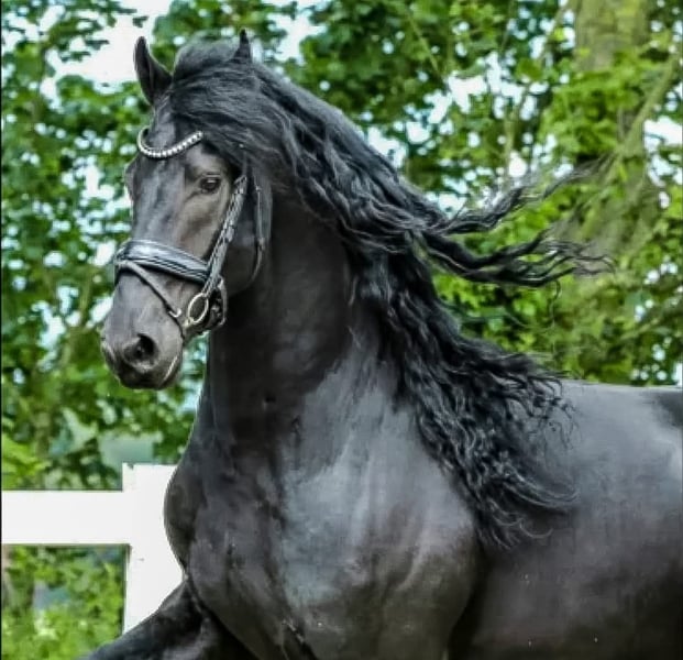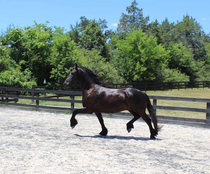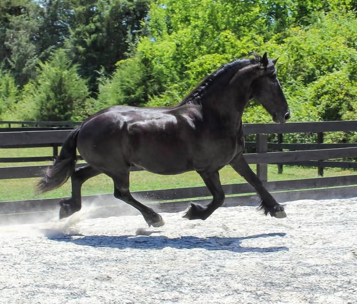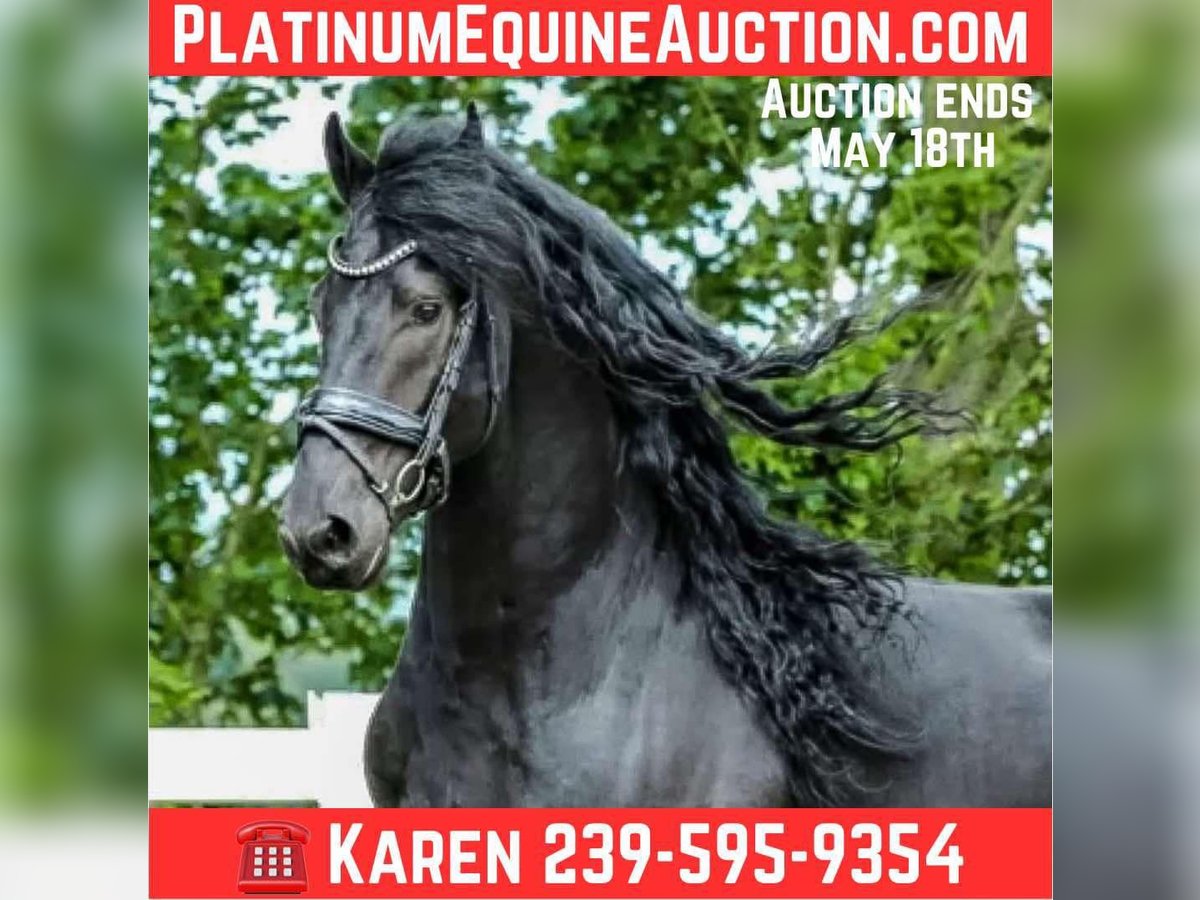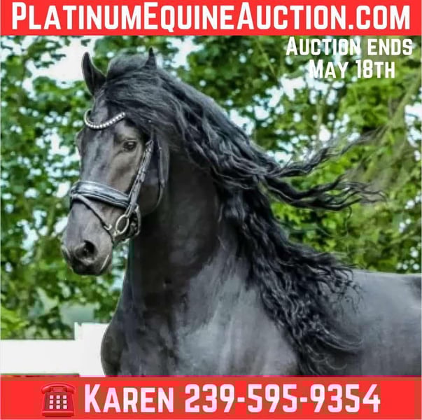 ONLINE AUCTION Place your bids at www.PlatinumEquineAuction.com Starting Bid $3500 Auction ends May 18th, 2025 Need a new saddle? Check out White Rock Saddles on our website or Facebook! Santino is an 8 year old Friesian gelding imported from the Netherlands in 2021. He is an absolute jewel, currently training 3rd level dressage and also trained to drive while still in the Netherlands. His bloodlines are excellent and excelled in his earlier training, earning AA designation and STER predicate. Santino has been in training on and off since his arrival in the states. Every trainer has LOVED him and he enjoys each challenge that’s presented to him. He gets along well with other horses, great for farrier and vet, NO VICES, and an overall perfect gentlemen. The YouTube videos are when he was still in the Netherlands as a young stallion. The recent bareback training video is with Arne Koetz from the Netherlands (very accomplished dressage trainer). Santino has a great mind and eager to please! Santino could also be a great fox hunter prospect, saddle seat or simply hack out! Call me for more information, more videos and photos can be provided, Karen Watson 239-595-9354. Santino is located in Scottsville, VA. ONLINE AUCTION Place your bids at www.PlatinumEquineAuction.com Starting Bid $3500 Auction ends May 18th, 2025 Need a new saddle? Check out White Rock Saddles on our website or Facebook!