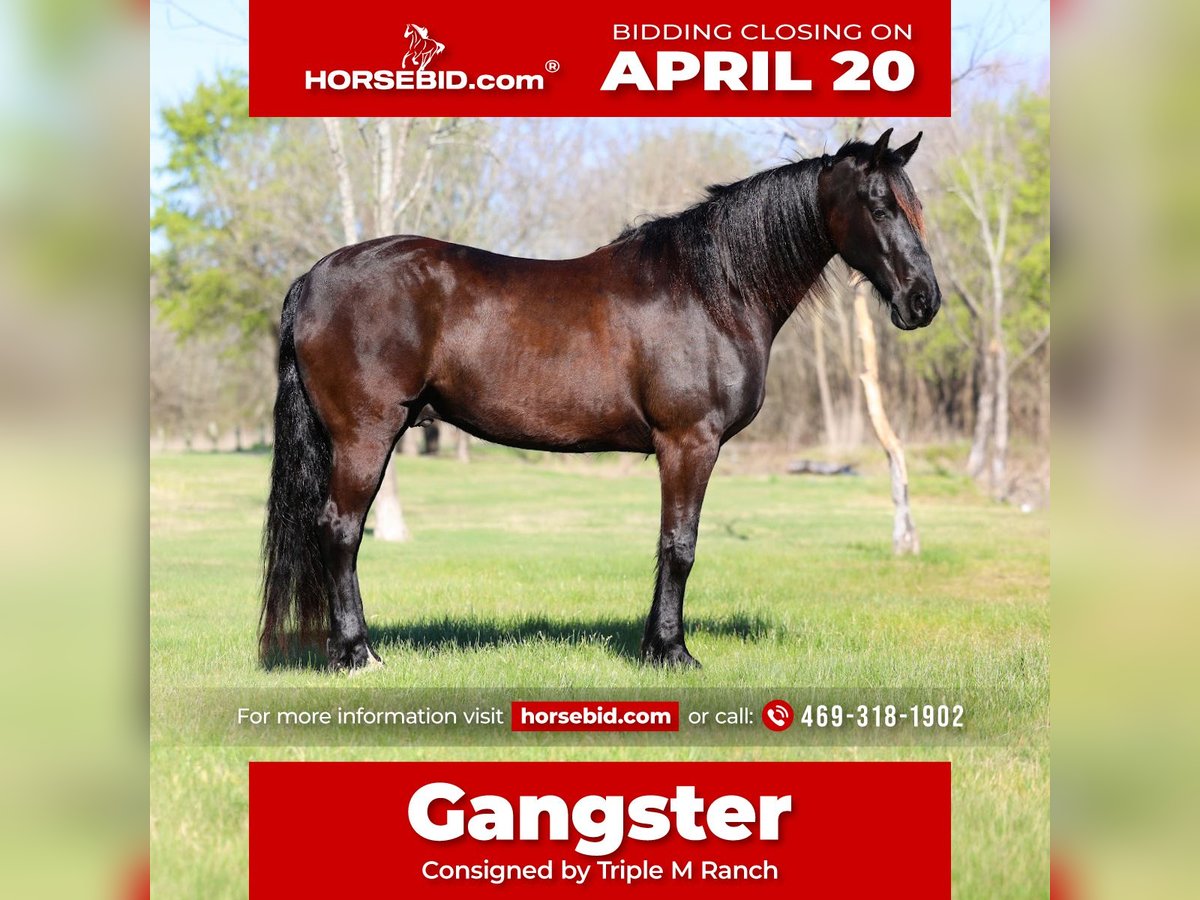 ⚜️𝐭𝐡𝐞 𝓔𝓵𝓲𝓽𝓮 𝐒𝐩𝐫𝐢𝐧𝐠 𝐂𝐥𝐚𝐬𝐬𝐢𝐜⚜️ Happening now thru MONDAY | APRIL 20th - Available EXCLUSIVELY on HorseBid's website! For more details and to register visit: www.Horsebid.com CONSIGNOR CONTACT: Triple M Ranch 469-318-1902 LOCATION: Talty, TX BREED: Friesian REGISTERED: No REGISTERED NAME: Gangster COLOR: Black HEIGHT: 16 AGE: 9 GENDER: Gelding This is "Gangster", the best, most gentle, well broke, PUREBRED FRIESIAN GELDING. He is broke to ride and drive. He stands 16 hands tall and is 9 years old. This is one sweet and kind hearted horse. He is easy to handle, a true gentleman, and can be ridden and driven any where you want go. He has impeccable ground manners, he is obedient, and he aims to please under harness or tack. He has been driven to town and up and down busy roads. He is traffic safe, not spooky, and he rides confident out alone. Gangster is a super trail horse that is sure footed, solid, and honest. He loves attention, he is personable, and likes to go for trail rides. He will cross water, handle steep terrain with no issues, and walks out nicely on a loose rein. He is easy to ride or drive, and he is super comfortable. He has a nice lope, he will work a circles, he will catch his leads, and stop easily. He backs up and moves off of leg cues. He stands tied quietly, he loads, bathes, and hauls with ease. He sells 100% sound with no issues. We will gladly help find and arrange transport. Call us if you have anymore questions about this big beautiful black Friesian.