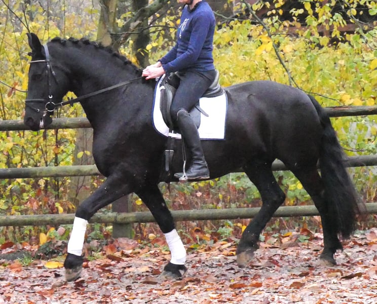 Name: Samur Alter: 9 Jahre Stockmaß: 170 cm Geschlecht: Wallach Rasse: Friese Abstammung: Sir Henry von Jerke x Deichgraf von Dagho Ausbildungsstand: geritten und gefahren Samur ist ein bildschöner, großer Friesen Wallach und sucht ein neues Zuhause. Er ist einspännig gefahren und wird im Gelände , Halle und Platz geritten. Samur ist Anfänger geeignet und kennt es tagsüber auf der Wiese zu stehen. Alles weitere unter der Nummer 0176 62495567