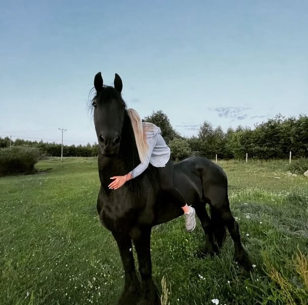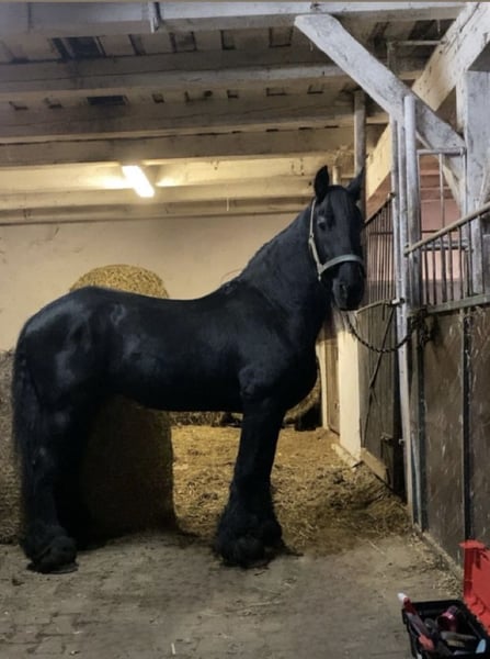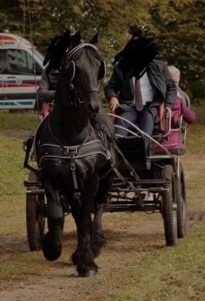 Friesian stallion in very good condition - healthy, well-kept. He has extensive experience working under the carriage - a reliable and proven horse. Problem-free with the farrier and other grooming procedures.
