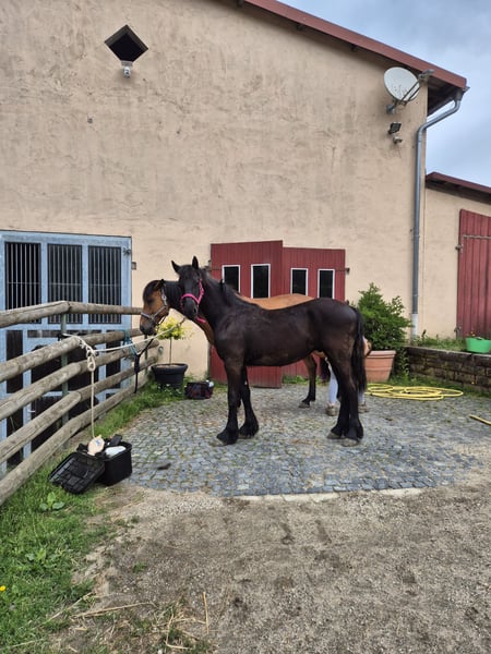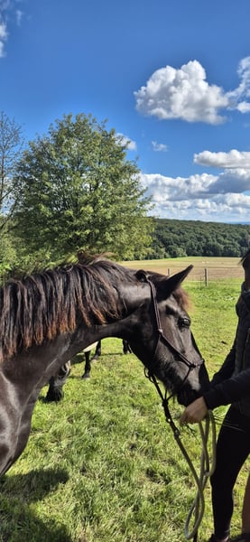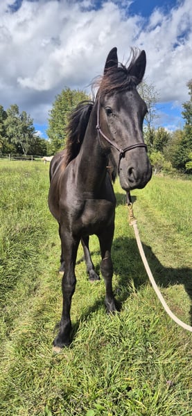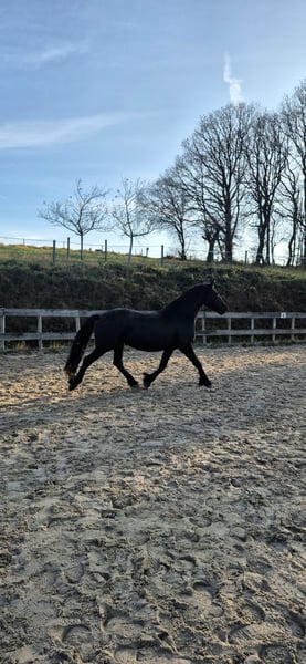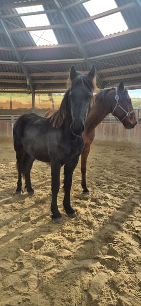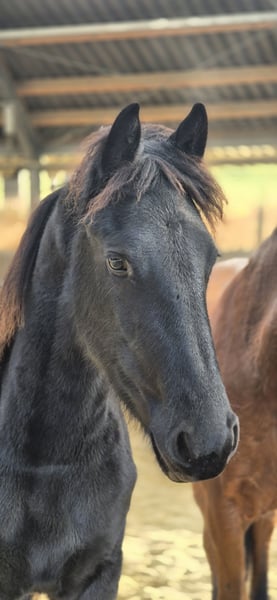 For sale is our beautiful Friesian stallion, born in 2024. Last year, he was awarded the title of Best Foal at the breeding show in Alsfeld, receiving second premium. Ari enjoys going for walks—alone or with company—and is very well-behaved, clear-minded, and a joy to watch grow up. Currently, he is still on pasture with his friends, enjoying the grazing season. He easily separates from his herd and is full of trust. His special nature makes him a reliable companion. We welcome interested parties to visit us in Hofheim and see him for themselves. Thanks to his excellent pedigree and wonderful temperament, he would also be an excellent candidate for breeding. We are only placing Aarjen in the best hands. No stabling-only inquiries, no dealers. Serious inquiries are very welcome at any time via WhatsApp.