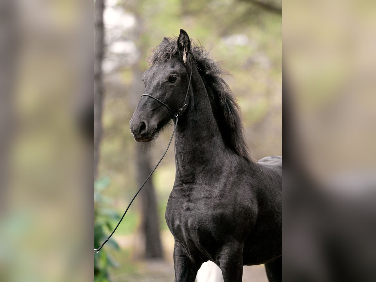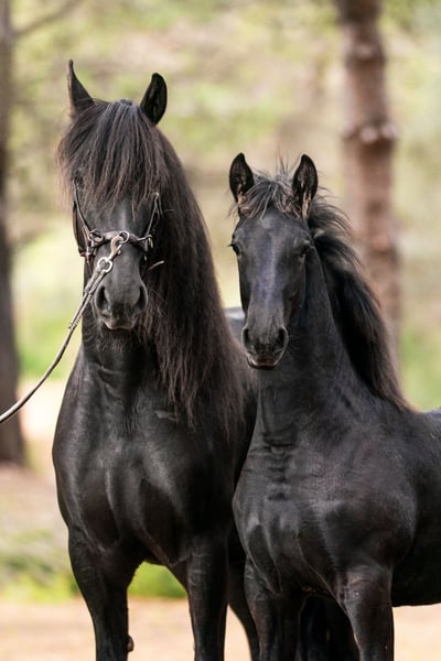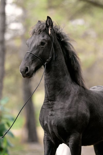 His name is Elior Ofortunado, which translates to "My light, blessed by luck." And indeed, every step he takes radiates the promise of a future champion. This eight-month-old stallion already displays grace, character, and a strong pedigree. On the paternal side, his grandfather is Vikkel 470, and his great-grandfather is Beart 411 (Stb Sport Pref), who received the 1A (1A Premium) award and placed third in the stallion show in 2005. His bloodline is one of the strongest within the Friesian breed, with numerous distinctions (Ster, Pref, Model) on his dam’s side. His sire, Jasper 366 (Stb Sport Elite Pref), is one of the most renowned Friesian stallions, a four-time Hengstenkeuring champion, and has gone down in KFPS history as the "king" among Friesian sires. On his dam’s side, his grandfather Tsjalle 454 (Stb Sport Elite Pref AAA) is one of the youngest stallions in the breed to receive the Preferent status; many of his daughters have earned Kroon or Model status. The foal is for sale.