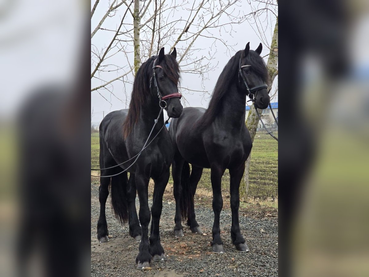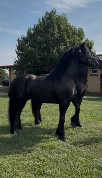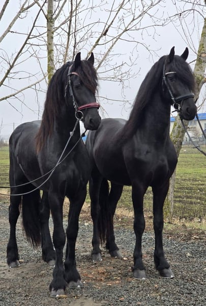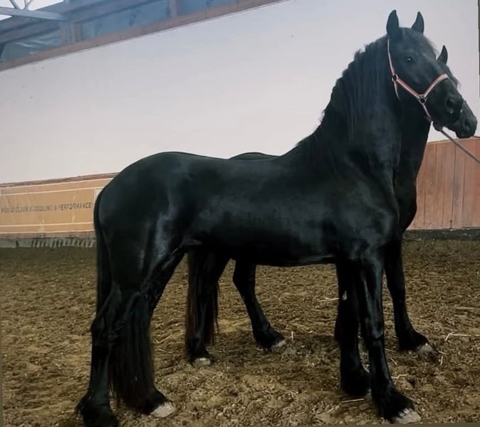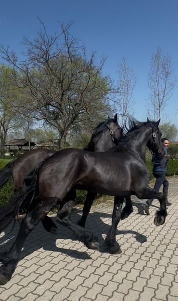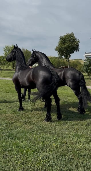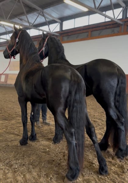 Two exceptional 3-year-old Friesian stallions are available for purchase. These young sport horses combine the striking elegance of the breed with promising athletic potential, making them ideal for sport, dressage, or future breeding. Both stallions are well-handled, correctly conformed, and exhibit the powerful, expressive movements characteristic of Friesians. They have a solid foundation in basic training and have been raised with great care regarding their health, temperament, and development. Details: Age: 3 years Breed: Friesian stallions Expressive, elastic movements with significant potential for sport Good temperament, intelligent, eager to learn, and people-oriented Correct conformation and a strong, healthy physique Well-trained and ready for further education These impressive young horses are perfect for riders or breeders seeking high-quality Friesian sport horses with charisma and future promise. Serious inquiries only. Please feel free to contact us for more information, photos, or videos.