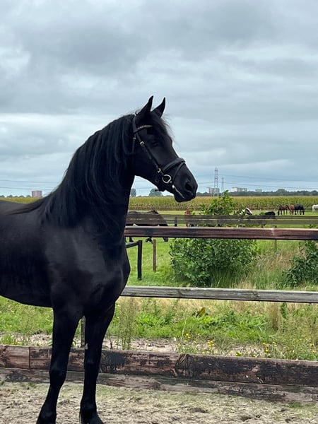 Hermoso semental Frisón de 3 años — algo realmente especial (P)