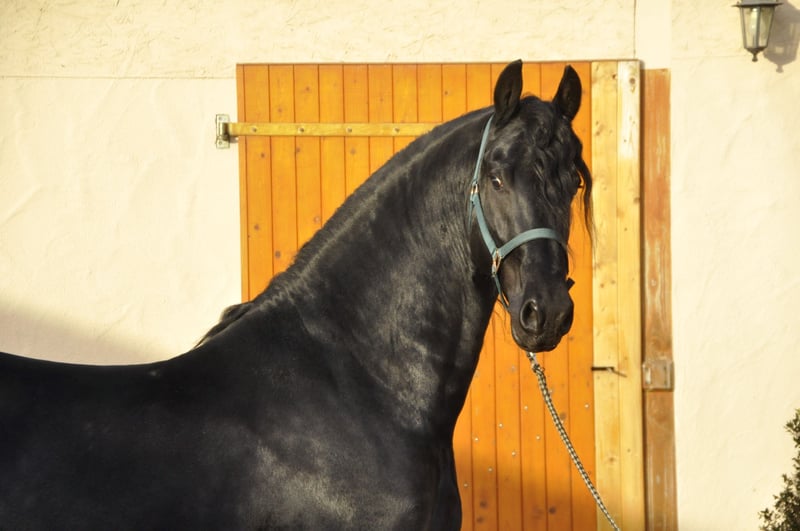 Ein sehr typvoller und korrekt gebauter Ster-Hengst mit überdurchschnittlichen Bewegungen und mega Ausstrahlung. Er hat einen sehr dicken und langen Behang und ist dem Alter entsprechend gut geritten und gefahren. Da er sehr rittig und gelehrig ist und immer gut mitarbeitet, läuft er auch schon den Außengalopp. Ein Pferd mit Potential für die höhere Dressur! Er hat einen mega Bergaufgalopp - ein Friese, der beim Reiten extrem Spaß macht! Er war übrigens im Hengstleistungstest. Er hat einen super Charakter und eine ganz tolle Arbeitseinstellung. Er macht einfach nur Spaß - egal ob im täglichen Umgang oder beim Reiten und Fahren. Ein ganz besonderes Pferd - ein absoluter Allrounder. Anfragen bitte ausschließlich telefonisch.