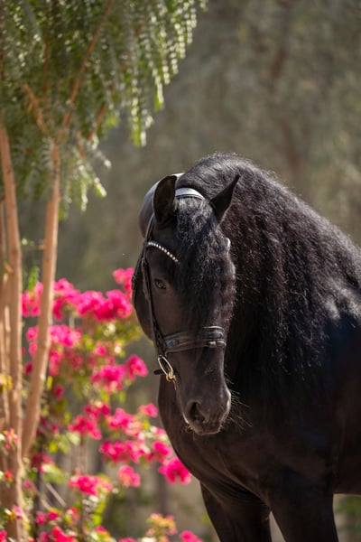 Quatro van ’t Oost 2021 Friesian Stallion Ulbrân x Bente 412 Correctly built young Friesian stallion with a strong topline, good proportions, and a well-set neck. Black coat with abundant mane and tail. Clean legs and correct feet. Quatro is straightforward in handling and has a cooperative, willing attitude. Shows a natural forward way of going and good balance for his age. Suitable as a developing sport prospect or future breeding stallion. Well handled in daily management. Ready to move to a new stable. Available immediately. Located in Dubai, UAE Worldwide Shipping available