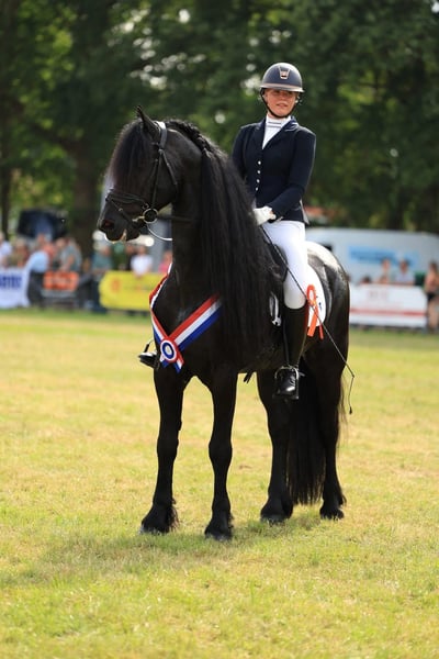 Jensen van the Terpen – Elite 7-Year-Old Friesian Star Stallion. An exceptional Friesian stallion combining presence, power, and refined elegance at the highest level. Jensen represents the rare modern Friesian: expressive, athletic, and extremely reliable in temperament. A true show-stopper with abundant feathering, a powerful front, and three outstanding, expressive gaits with natural balance and suspension. He performs effortlessly and loves attention, making him a standout in any international arena. Highlights: • Dressage up to Z level • Successfully presented at the Royal Friesian Stallion Show, Leeuwarden • Multiple competition wins and placements • Experience in harness sport • Approved stallion selection trajectory Health & quality: • Fully clinically and radiographically approved • Fertility tested (good semen quality) • Ster stallion Pedigree: Out of Kroon mare Mona Lisa van the Terpen, descending from the proven maternal line of Tjalbert 460. A rare opportunity for the serious international buyer seeking a Friesian stallion with both performance ability and elite presence. Available exclusively to a high-end 5★ home / professional sport or breeding program.