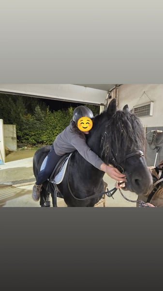 À vendre : notre étalon Friesen-Fellpony mix Alecandro, âgé de 10 ans, avec une taille d’environ 1,60 m. C’est un étalon noir expressive, actuellement non chaussé, mais il connaît aussi les fers. Alecandro connaît la selle, la bride et le poids du cavalier. Il a été travaillé en liberté pour le loisir et possède une base solide, mais il nécessite encore une remise en confiance douce et cohérente pour développer sécurité et routine. Il a été ferré il y a quelques années, mais on ne sait pas comment il se comporte en attelage. C’est un étalon au caractère affirmé : sensible, attentif et très présent dans sa manière d’être. Il sera donc confié uniquement à des personnes expérimentées, de préférence avec expérience en tant qu’étalon. PAS pour débutants ou enfants. Malheureusement, Alecandro est eczémateux (nécessitant une gestion adaptée) et il est ferré de façon régulière. Le chargement demande du temps et de la patience, et il peut continuer à s’entraîner dans ce domaine. Localisation : 84550 Feichten an der Alz Prix : 1 500 € VHB Remarque pour les intéressés : Alecandro ne sera pas placé sous pression. Nous cherchons un foyer où il pourra se sentir bien et arriver tranquillement. Si vous êtes sérieusement intéressé, merci de nous contacter avec une brève présentation, votre expérience et votre mode d’élevage.