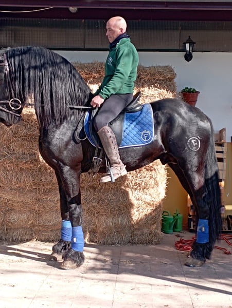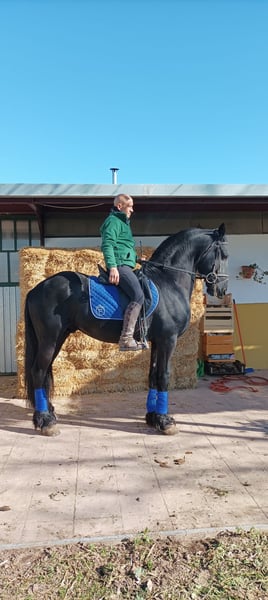 frison av hög kvalitet, lämplig för dressyr, med en dressyr som utför sidoövningar, passage, han arbetar på banan men kan gå med fler hästar eller ston. en enkel och bekväm häst. Mycket bra rörelser. En mycket stilig häst, speciell. Med stor genetik. Är i Spanien. mer information 0034660698281. Vi är ett hästförsäljningsföretag, vi skickar hästar över hela världen.