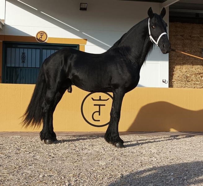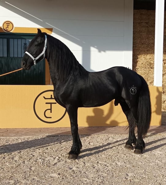 high quality frison, suitable for dressage, with a dressage that performs lateral exercises, passage, he works on the track but can walk with more horses or mares. an easy and comfortable horse. Very good movements. A very handsome horse, special. With great genetics. Is in Spain . More information 0034660698281. We are a horse sales company, we send horses all over the world.