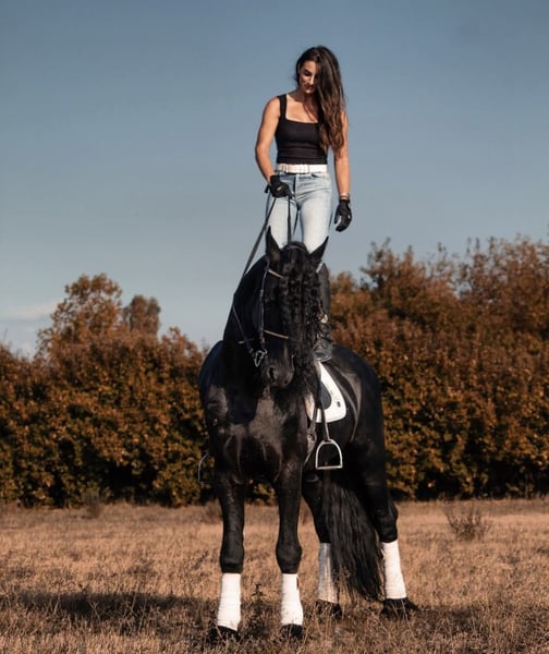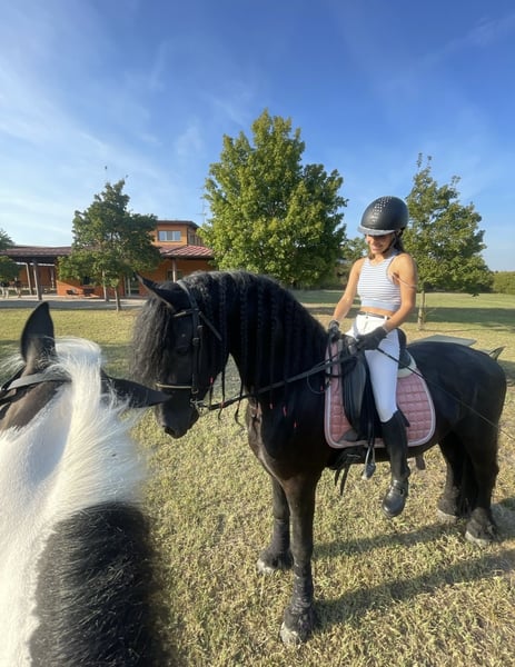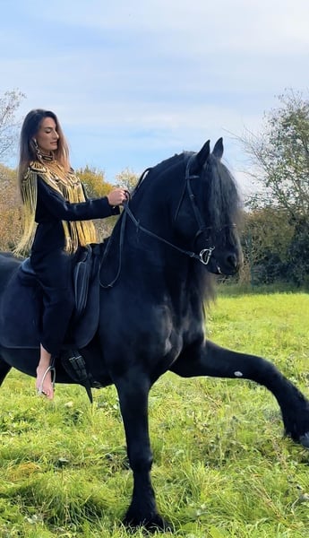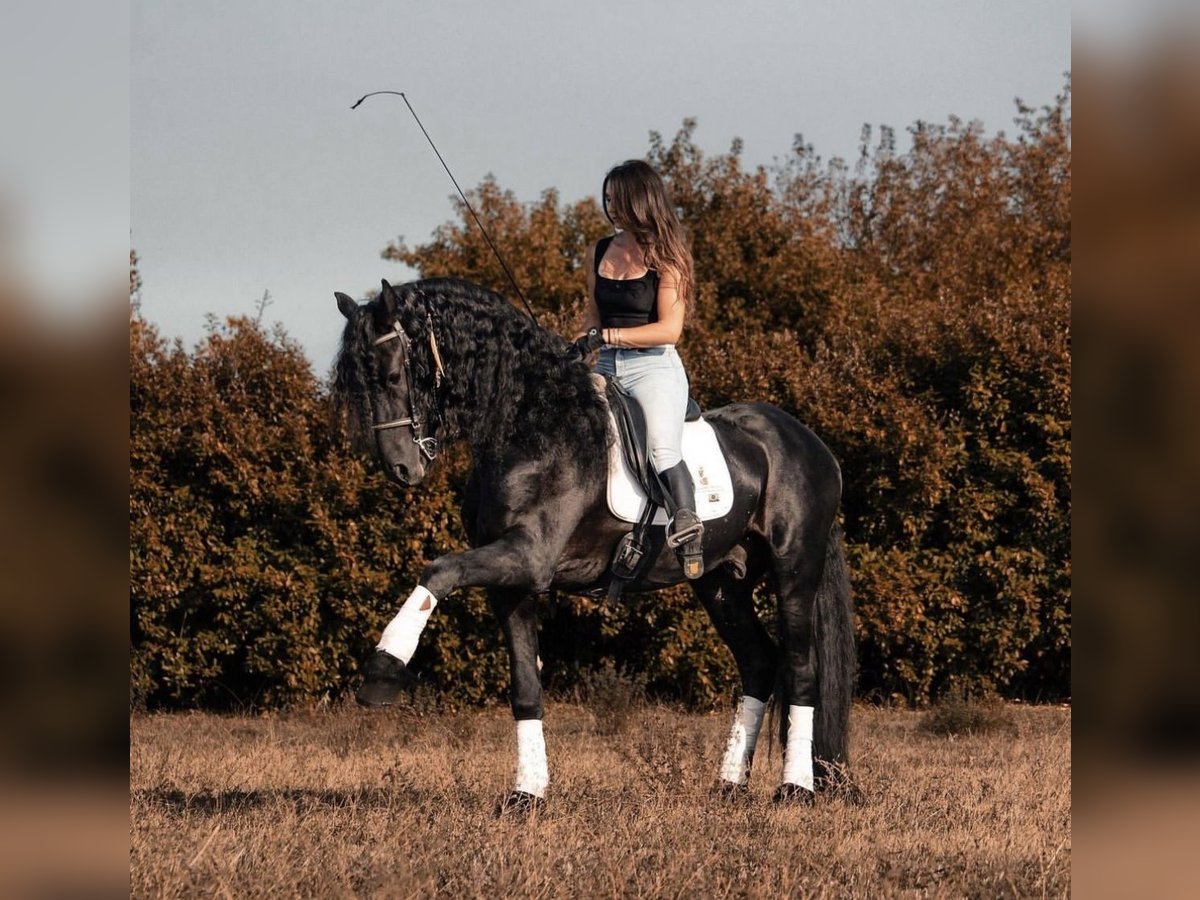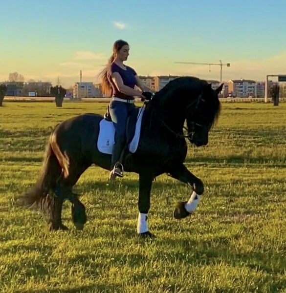 FOEKE VAN DE DEMRO STABLES (JEHANNES 484 X KYRA W.T) Stunning purebred Friesian stallion (not even aware of his breed) aged 8 years. Height: 1.72 m at the withers. A horse of unparalleled beauty and kindness. VERY HEALTHY, NEVER had any health issues. Performs perfectly on flat ground, an exceptional horse. Suitable for any rider with a minimum of experience. IMPORTANT GENETICS!! We are looking for someone who will love him passionately. For more information: +39 3917059140 (Agata) +39 3513334724 (Fabio) NO dreamers or traders, please.