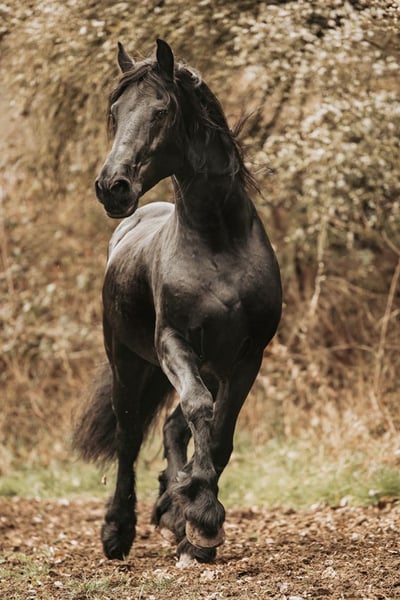 Tiark von der Kornsmühle Friesian horse, born 2014, black stallion, height 1.67 m HB 1 stallion - licensed and performance tested Not a carrier of the genetic defects hydrocephalus and dwarfism, free of chestnut factor (Rotgen), homozygous black Tiark von der Kornsmühle is a son of the highly successful Norbert 444 Pref. Sport and the model and premium mare Finja von der Kornsmühle M, S, Pr.St. He has powerful and ground covering gaits with a lot of drive from the hindquarters and convinces with his good rideability and constant willingness to perform in combination with his very people-oriented and lovable character. His good interior and exterior, his excellent pedigree and an inbreeding factor of 0.0% are very interesting for breeding. His offspring are also convincing: typey, noble and extremely strong-moving foals that have already been awarded high ratings as champion foals of various years and gold-winning offspring. Tiark is also an interesting sire for mares of other breeds. In addition to pure Friesian foals, he already has some very beautiful black pinto offspring. Tiark von der Kornsmühle is a licensed and performance-tested stallion. He completed his 50-day performance test in Redefin with very good marks in all disciplines. He is registered in Stallion Book I and is available to all breeds. Fresh semen dispatch via the EU insemination station Triple J Stables. Frozen semen via the EU insemination station Freeze & Breed.