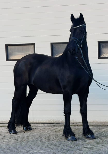 🖤 Te koop: Prachtige Friese merrie 🖤 10 jaar – ca. 166 cm Wij bieden deze mooie en stijlvolle Friese merrie aan ✨ Ze is 8 jaar oud en meet ongeveer 166 cm. Een echte verschijning met een lief en betrouwbaar karakter ❤️. In de omgang is ze zeer braaf en vriendelijk 🤍, fijn in de dagelijkse verzorging en makkelijk in de hand. Ze is beleerd voor de koets en loopt zowel éénspan als tweespan 🚘🐴, wat haar veelzijdig en betrouwbaar maakt. Een ideale merrie voor recreatief gebruik, mennen of voor iemand die op zoek is naar een eerlijke Friese dame met een fijn karakter 🌟 📩 Meer informatie of een bezichtiging op aanvraag.