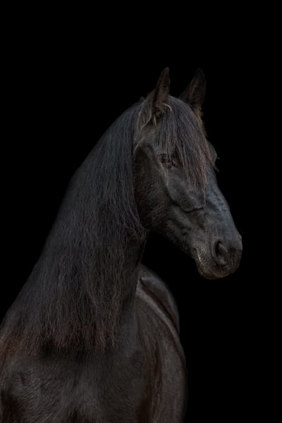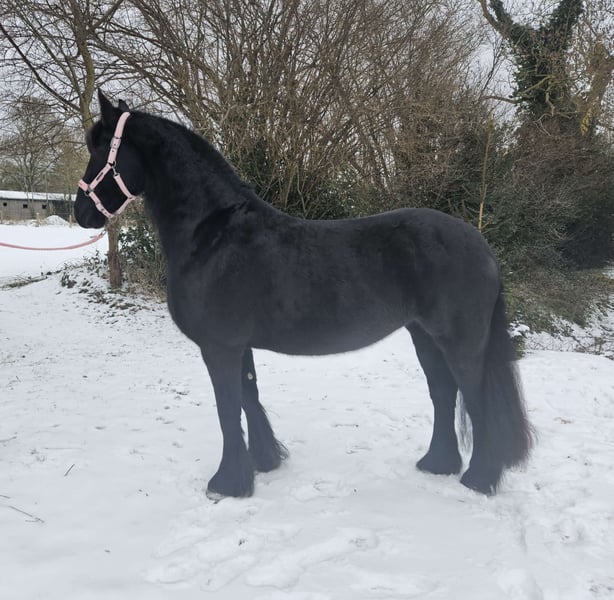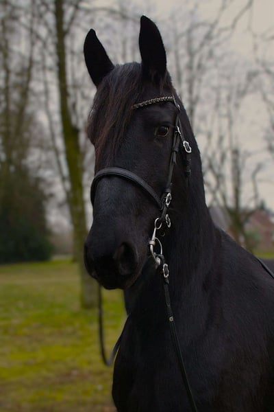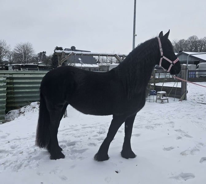 Aus privaten Gründen steht zum Verkauf Annelie Shela K, eine 10 Jahre alte typvolle Friesenstute mit Traummähne und gutem Fleiß, dabei aber sehr fein und immer gut zu händeln. Absolut menschenbezogen, extrovertiert und verschmust. Sie kommt auf Abruf aus der Herde und möchte mit ihrem Menschen arbeiten. Aktuelles Stockmaß 167cm, 660kg. Geboren 2016. Pier 448 x Mintse 384. KFPS Papiere vorhanden. Sie hatte als Fohlen eine hervorragende erste Prämie und hat eine Top Abstammung, wurde aber nicht weiter von mir vorgestellt und hatte auch noch kein Fohlen. Annelie ist seit sie 2 1/2 Jahre alt war in meinem Besitz und ich habe sie selbst nach klassischen-barocken Grundsätzen ausgebildet. Dabei wurde sie mit viel Geduld, sehr langsam und schonend eingeritten. Sie ist geritten in allen Grundgarten und Seitengängen im Schritt, Schulterherrein und Renvers im Trab. Spanischer Schritt wurde gerade unter dem Sattel begonnen. Dabei ist sie sehr fein im Maul, rollt sich nicht ein, und hört sehr schön auf Sitz und Bein. Sie geht alleine und in der Gruppe ins Gelände, ist dort aufmerksam, aber gut zu kontrollieren. Vom Boden aus ist sie sehr vielfältig ausgebildet: Longe, Doppellonge, "Fahren vom Boden", Dualaktivierung, Stangenarbeit, klassische Handarbeit, Zirzensik, Freiarbeit, Freispringen, etc. Sie kennt Boxenhaltung mit Gruppenpaddock und Offenstallhaltung, ist dabei sehr verträglich und rangniedrig in der Herde. Sie ist verladefromm und ging bisher immer problemlos barhuf. Bei der Hufbearbeitung steht sie brav. Röntgenbilder liegen nicht vor, aber laut Osteopathin sind die Gelenke und der Rücken klar. Zähne wurden regelmäßig gemacht, sowie Entwurmt und auch die Impfungen sind selbstverständlich aktuell und komplett. Rassetypisch hat sie immer mal wieder Probleme mit Mauke/Raspe, das lässt sich aber mit den üblichen Mitteln immer gut in den Griff bekommen. Sonst hat sie keine bekannten gesundheitlichen Einschränkungen. Da sie gerne auch mal etwas über motiviert sein kann, wünsche ich mir einen ruhigen bestimmten Menschen der weiß ihre Energie in die richtige Richtung zu leiten. Wer einen wunderschönen, motivierten Allrounder sucht für anspruchsvolle Freizeitreiter wird mit Annelie sehr glücklich werden. Gerne kann auch ihre gesamte Ausrüstung mit erworben werden. Platz vor Preis.