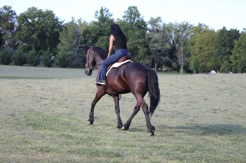 ONLINE AUCTION Place your bids at www.PlatinumEquineAuction.com Starting Bid $3500 Auction ends September 29th, 2024 Need a new saddle? Check out White Rock Saddles on our website or Facebook! Juliet is by far a barn favorite! She is a 9 year old Registered Friesian Bloodhorse mare. She stands 15.2 hands and is gorgeous and very elegant in everything she does. She is broke to ride and drive with a beautiful walk, trot, canter. Juliet has a lot of action and is fluid in her gaits, she is very quiet and effortless to ride. Juliet has had some dressage training, she has been trail ridden across bridges and over logs, she will cross the road, and past traffic and dogs. She is a special, hard-to-find mare that will be a head turner everywhere she goes. Juliet never has a bad day, turn her out with other mares or geldings, she is great on the ground, ties, loads, and stands to be clipped! 100% sound mind and body! For more information or if you would like to come try this wonderful mare please call or text Kassie Long 443-991-9282 Located in Marshall, MO. ONLINE AUCTION Place your bids at www.PlatinumEquineAuction.com Starting Bid $3500 Auction ends September 29th, 2024 Need a new saddle? Check out White Rock Saddles on our website or Facebook!