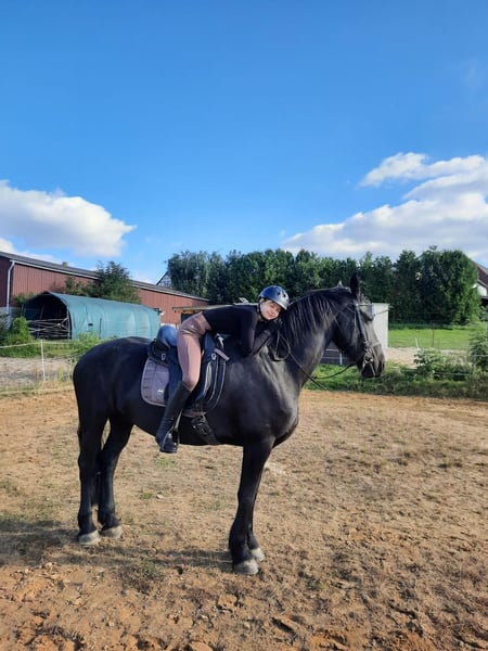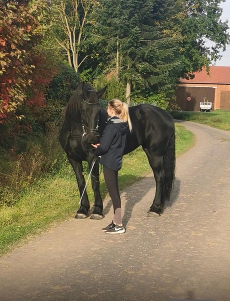 For sale: a 10-year-old Friesian mare with a height of approximately 17.2 hh. She is an ideal leisure horse for riders seeking a reliable and well-trained partner. The mare is well-schooled and confidently moves in all three basic gaits. She is sensitive to ride and always cooperative and eager to learn. She is also a dependable partner in the field—both alone and in a group—provided the rider has sufficient experience and confidence. Overall, she is particularly suitable for confident riders looking for an uncomplicated and honest horse. In addition to riding, she is familiar with groundwork and works with motivation and attentiveness. In daily handling, she impresses with her particularly calm and friendly nature. She is loading, farrier, and vet friendly, and remains composed in new situations. She is accustomed to both arena and outdoor terrain and is used to road traffic. Health-wise, she is unremarkable with no known issues. She is regularly vaccinated and dewormed. **Overview:** * Friesian mare * 10 years old * approx. 17.2 hh * Well-schooled, confident in all basic gaits * Secure in the field (alone & in groups) * Suitable for confident riders * Groundwork & riding * Very well-behaved in handling * Loading, farrier, and vet friendly * Knows arena, outdoor terrain, and road traffic * Healthy, regularly vaccinated & dewormed She is a wonderful horse for leisure riders who value character, reliability, and a pleasant demeanor. 📍 Serious inquiries are welcome via message.