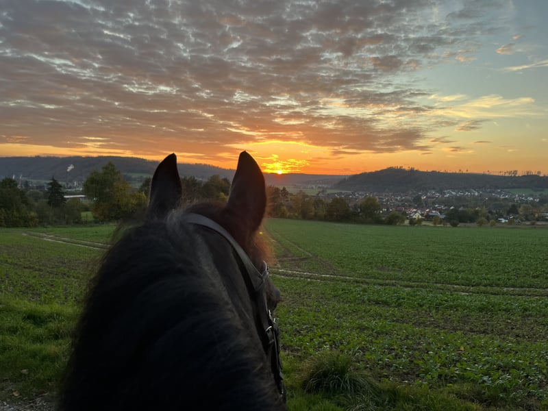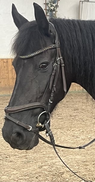 Zum Verkauf steht eine wunderschöne Friesenstute aus dem Jahr 2011. Sie ist eine elegante, typvolle Stute mit einem Stockmaß von 161 cm und deckt damit auch größere Reiter sehr gut ab. Die Stute eignet sich hervorragend für die Freizeit und den leichten Dressursport. Sie ist im Stutbuch I des FPZV eingetragen und hat die 2. Staatsprämie. Die charmante Stute besticht durch ihr einnehmendes Wesen, ist bestens erzogen, absolut brav und verschmust im Umgang und hat ein sanftes, ruhiges Temperament. Das macht sie zu einer idealen Partnerin für Ausritte und entspannte Stunden im Gelände – allein und in der Gruppe. Hier ist sie sehr leicht handelbar und gut als Familienpferd (vielleicht für Eltern & Kinder) geeignet. Bocken, Steigen oder unkontrolliertes Loslaufen sind ihr unbekannt - auch wenn sie längere Zeit nicht gearbeitet wird. Sie ist auf A-Niveau ausgebildet, wurde aber aus Zeitgründen von mir nur selten auf Turnieren vorgestellt. Unter einem einfühlsamen, erfahrenen Reiter, der sie mit freundlicher Konsequenz abwechslungsreich weiter fördert und fordert, zeigt sie hier gerne ihr Können. Auf Turnieren zeigt sie sich stets entspannt und konzentriert, fremde Umgebungen, Menschen und Musik stören sie nicht. Die Stute kennt Longieren, Bodenarbeit und schätzt Stangentraining bis hin zu kleinen Sprüngen. Sie ist 100% verkehrssicher, egal, ob Busse, Landmaschinen, Züge oder Menschansammlungen - sie bleibt ruhig. Sie wird regelmäßig gearbeitet (Dressur; Gelände; Stangen- und Bodenarbeit; Longe) und könnte sofort weitergearbeitet werden. Sie ist sehr gut sozialisiert und versteht sich sehr gut mit anderen Pferden. In der Herde ist sie eher zurückhaltend, aber immer sehr gut integriert und kennt sowohl 24/7-Weidehaltung als auch die Kombination aus Weide- und Boxenhaltung. Wenn Sie auf der Suche nach Ihrem Herzenspferd, einem treuen Begleiterin für gemeinsame Freizeitaktivitäten oder einem neuen Familienmitglied sind - dann ist diese wunderschöne Friesenstute genau das Richtige für Sie! Ihr Verkauf ist kein Notverkauf, sondern geschieht nach reiflicher Überlegung aufgrund einer neuen persönlichen Lebenssituation. Aus diesem Grund entscheidet hier Platz vor Preis. Achtung: Die Stute ist kein Gewichtsträger! Bei Interesse oder für weitere Informationen melden Sie sich gerne. Ich freue mich auf Ihre Nachricht!