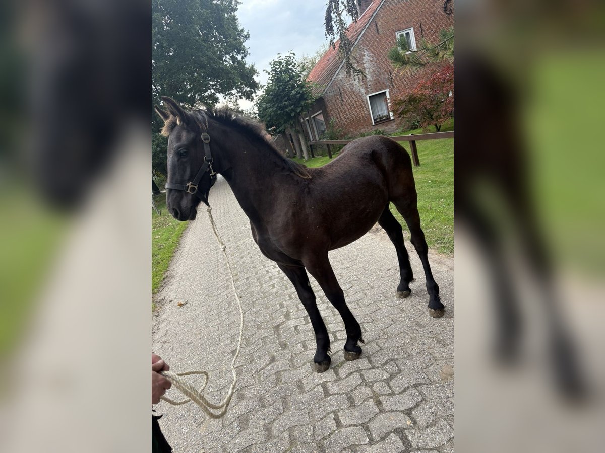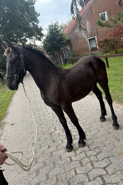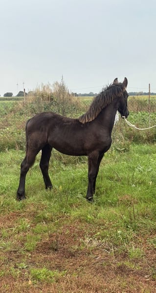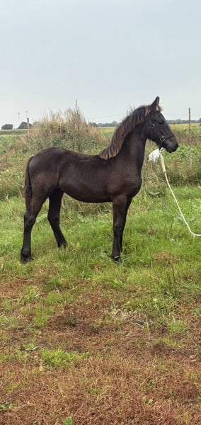 I am offering my filly foal born in March 2025. The dam is a sporty Baroque Pinto mare, and the sire is a Friesian stallion. The foal is not registered, but a passport will be provided at the time of sale. She has a wonderful presence, an alert attitude, and excellent basic gaits. She is accustomed to road traffic, dogs, and is friendly and open-minded towards everyone. Please feel free to contact me if interested. Phone: 015221813857