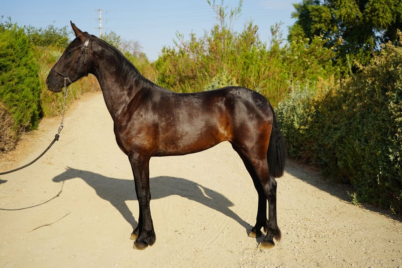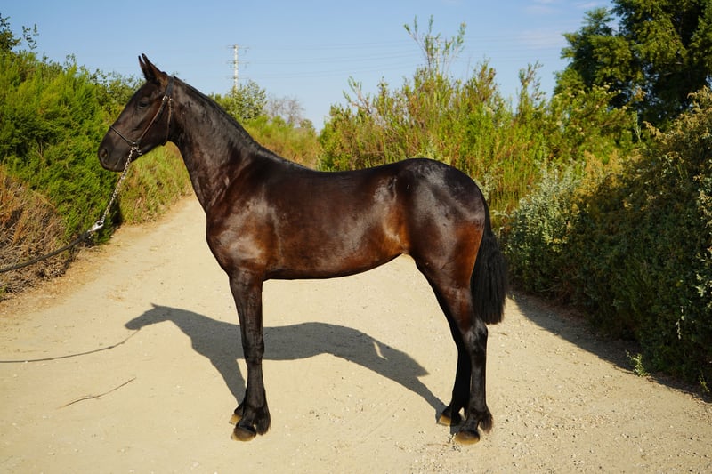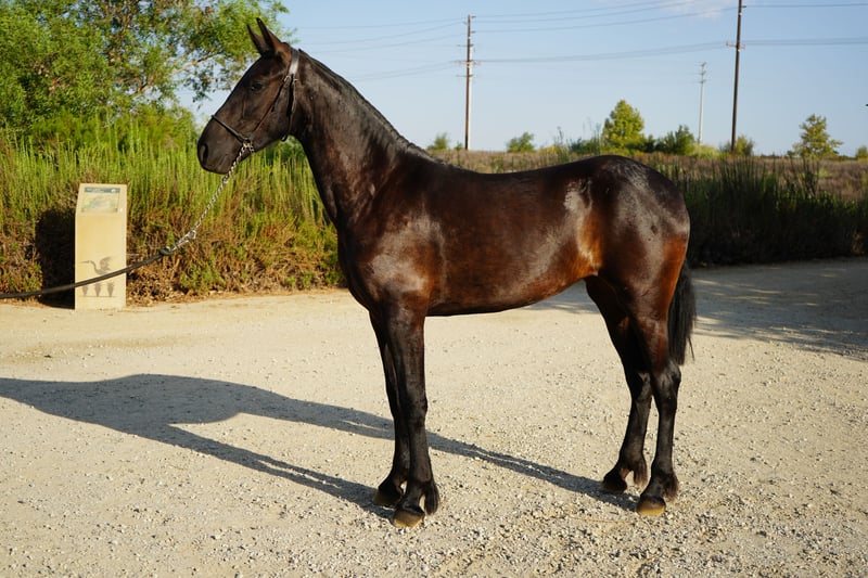For Sale: Warlander Mare (3/4 Friesian) | Sire featured in Super Bowl commercial Introducing a stunning Warlander mare, born in 2024! This beautiful black beauty showcases the elegance and grace that the Friesian and Andalusian breeds are renowned for. With her striking appearance and gentle demeanor, she is sure to turn heads wherever she goes. **Key Features:** - **Breed:** Friesian - **Gender:** Mare - **Year of Birth:** 2024 - **Color:** Black - **Height:** 15 HH Great prospect to begin under saddle for your discipline of choice and to start your breeding program. Family Background - Sire (Turco) Full bred Friesian with both parents imported from Holland. Characterized by his noble temperament, friendliness, and valiant performance on stage. One of few horses privileged to be featured on a Superbowl commercial. The Super Bowl commercial was a Doritos ad that displayed Lil Nas X riding Turco. - Dam (Feria) The dam's father was an all-black baroque Friesian with a flowing tail and mane. His robust build and docile temperament added to his uniqueness. He passed down his great temperament and working abilities under saddle to his offspring Dalia. This mare is bred with exceptional lineage, promising not only beauty but also a wonderful temperament and trainability. She is perfect for a variety of disciplines, whether you’re looking for a companion, a show horse, or a future breeding prospect. Don’t miss the opportunity to own this remarkable Warlander mare! For more information or to arrange a viewing, please contact us. Visit whitestallionhay.com to view more horses and info.