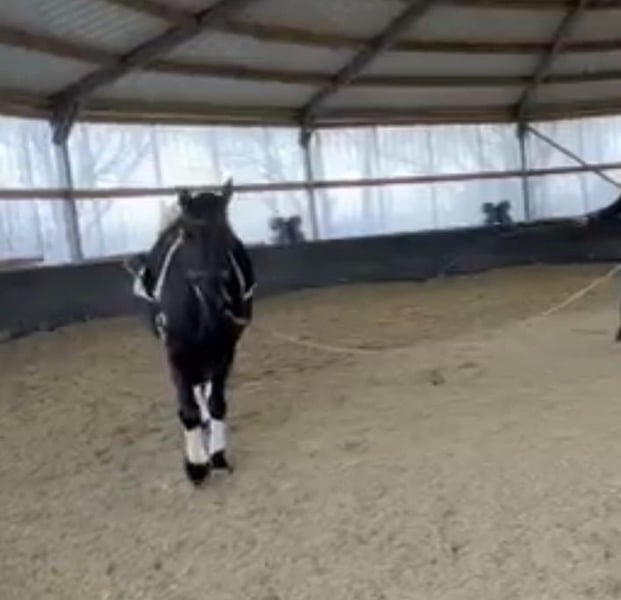 Yegua mezcla de Frisón, incluida con accesorios, busca un nuevo hogar