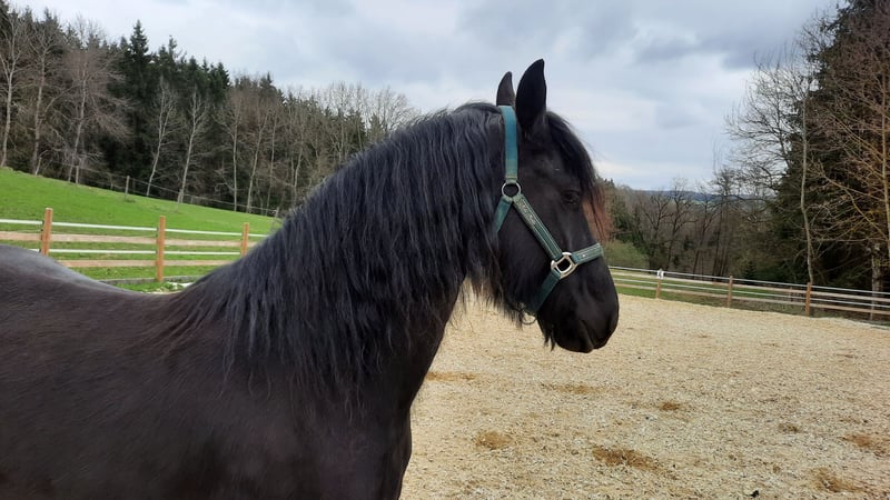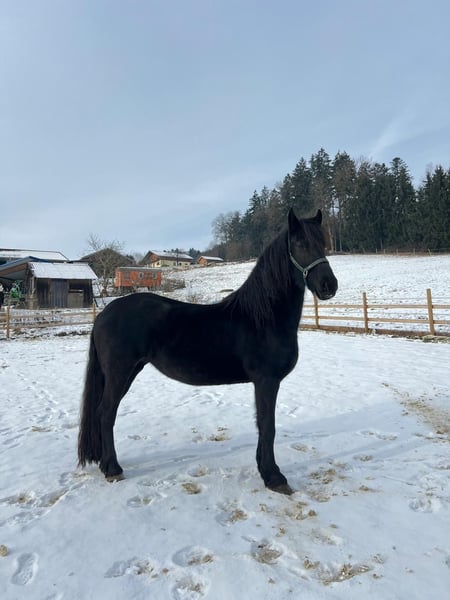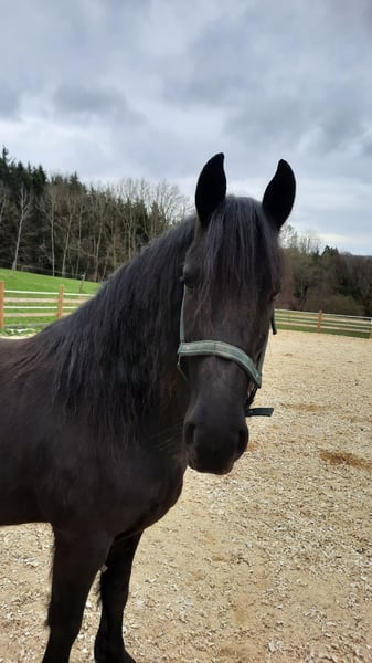 For sale is a 4-year-old registered mare by Gerben x Onne, with full papers. She is very people-oriented, lunges well, and is beginning to work in free movement. She is very well-behaved in handling. At the 2025 inspection, she measured 157 cm, but she is still growing. With proper training, earning the Ster premium should be achievable. Sale due to discontinuation of Friesian breeding. It is very important to us that she finds a good home.