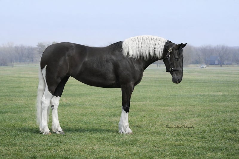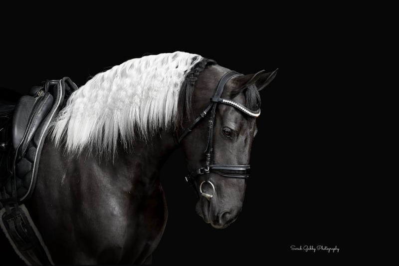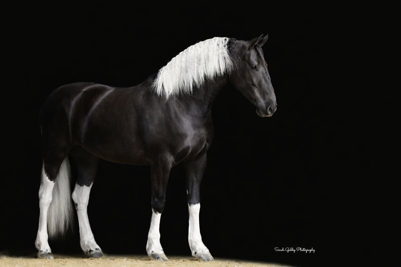 Beauty, yegua de 4 años, de 1.52 m, de raza Frisón, caballo de deporte, en blanco y negro