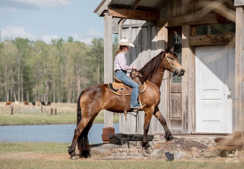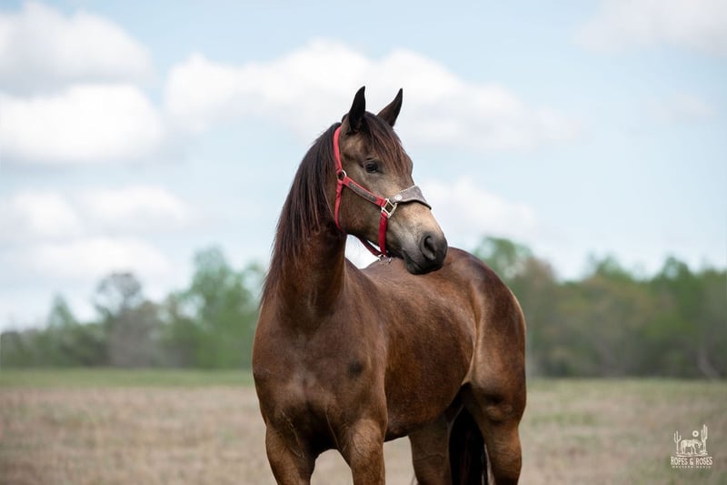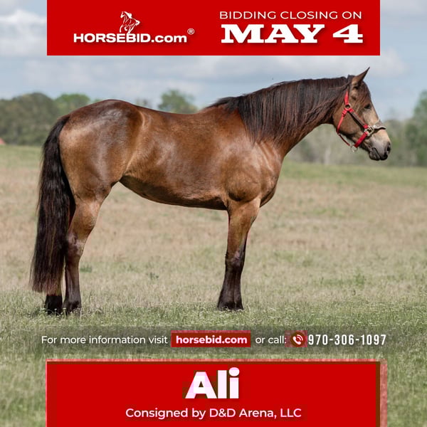 ▪️▫️◾️𝐭𝐡𝐞 𝑴𝒂𝒚 𝐒𝐞𝐥𝐞𝐜𝐭◾️▫️▪️ Happening now thru MONDAY | MAY 4th - Available EXCLUSIVELY on HorseBid's website! For more details and to register visit: www.Horsebid.com CONSIGNOR CONTACT: D&D Arena, LLC 970-306-1097 LOCATION: Vincent, AL BREED: Friesian/Quarter Horse Cross REGISTERED: Yes REGISTERED NAME: Wandering Ali Kat COLOR: Sooty Buckskin HEIGHT: 15.2 AGE: 4 GENDER: Mare ✨ Wandering Ali Kat (“Ali”) – Your Next Dream Partner ✨ Meet Ali, a stunning 4-year-old sooty buckskin Friesian/Quarter Horse Cross (50/50) mare standing at 15.2 hands with all the presence, personality, and potential you could ask for. At 4 years old she still has another year or so to grow and fill out. This girl is the total package—brains, beauty, and a heart of gold. 💛 ✔️ Solid foundation in both English & Western ✔️ Fantastic dressage prospect with natural movement and willingness ✔️ Amateur-friendly for a confident rider, yet talented enough for someone looking to bring along a special horse ✔️ Great ground manners & a barn favorite personality ✔️ Fearless, curious, and eager to learn Alli has been started right and continues to progress beautifully: • Experience with pole work • Knows basic lateral work •Stands tied and calm for the farrier & to be bathed/groomed •Loads and unloads •Crosses water •Great on trails alone and in a group • Never offered to buck or rear • Calm, level-headed, and dependable 💥 Bonus features: • Gorgeous thick mane and tail • Strong, healthy feet • Great with other horses • Sweet, cuddly, and LOVES her treats •Easy keeper ✨ Alli is the kind of horse that will truly bond with her person. 🧬Genetic DNA Testing performed Color: A/a, E/e, CR/n, nd2/nd2 Speed: Mid-distance Type Temperament: Curious/Vigilant LWO n/n, GBED n/n, HERDA herda/n, HYPP n/n, MH n/n, PSSM1 n/n, MYHM n/n, HDC n/n, Friesian Dwarfism n/n 📍 Located in Vincent,