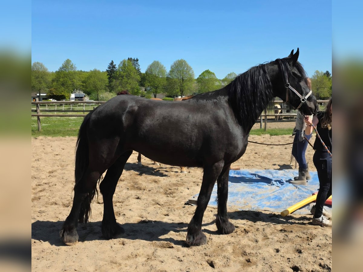 5-year-old Frisian cross mare, approximately 15.0 hh Our little Hilde is a late bloomer. She is still in full growth, which is why she has not yet been ridden. At the moment, we are gently introducing her to the basics of being a riding horse. Since she still has a lot to learn, she is currently offered at this price in a "rough" condition. Of course, her price will increase as her training progresses.