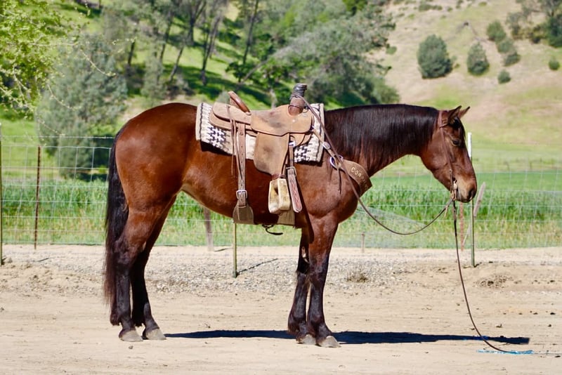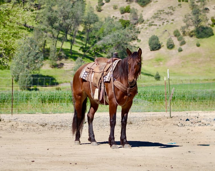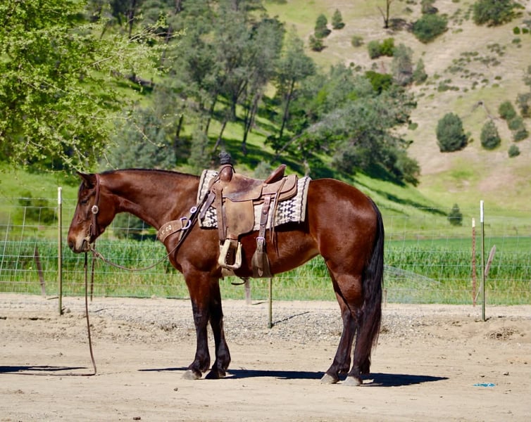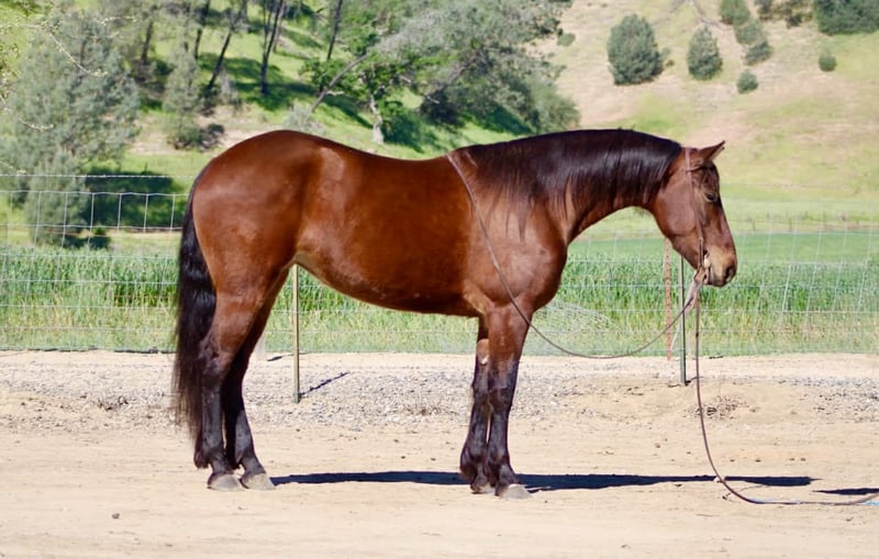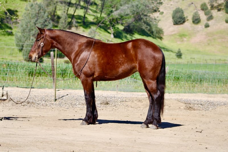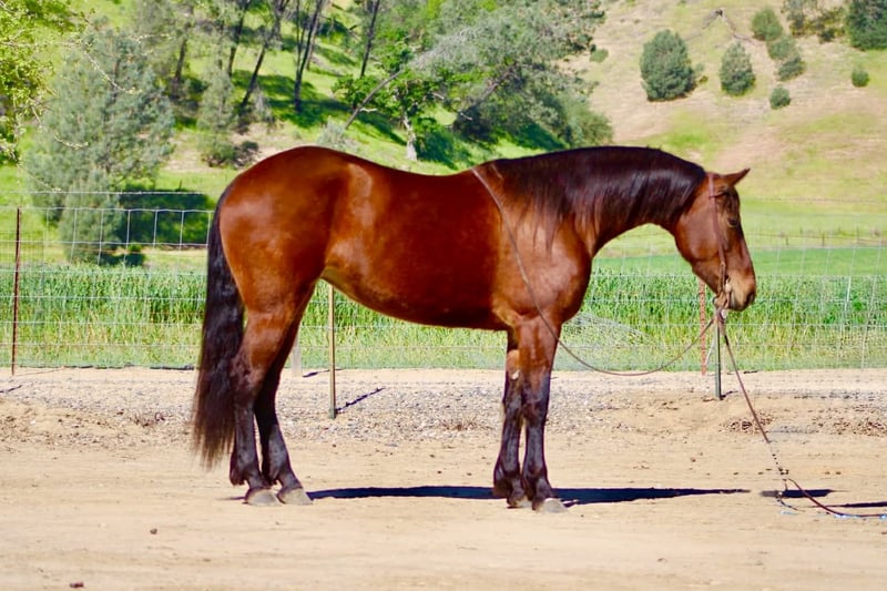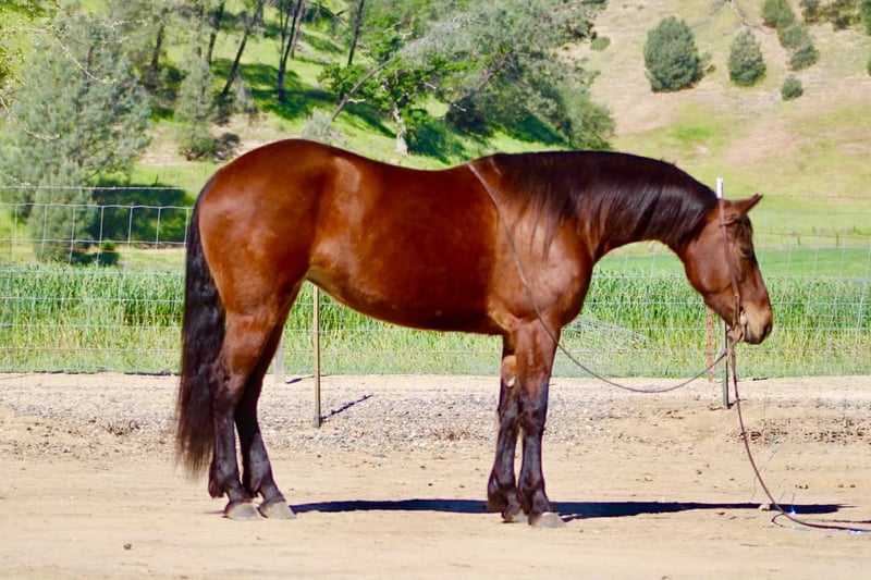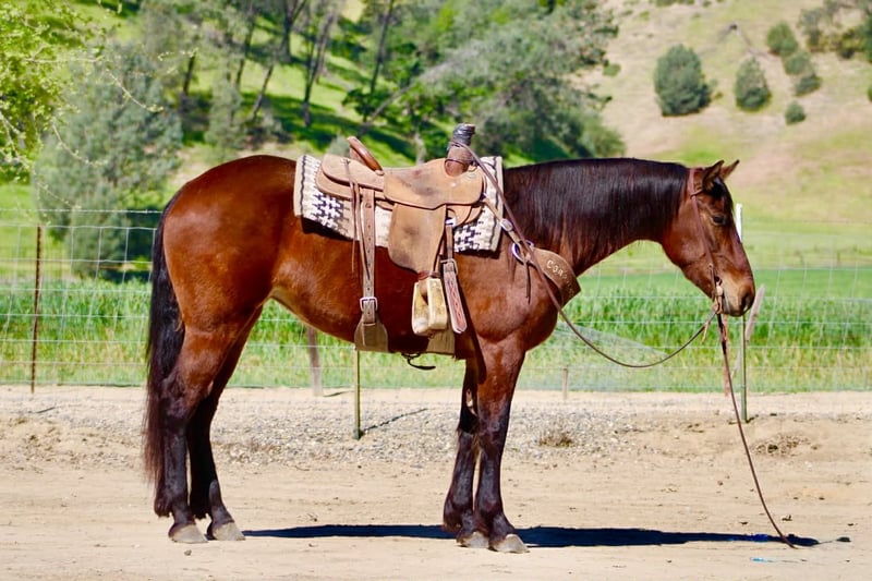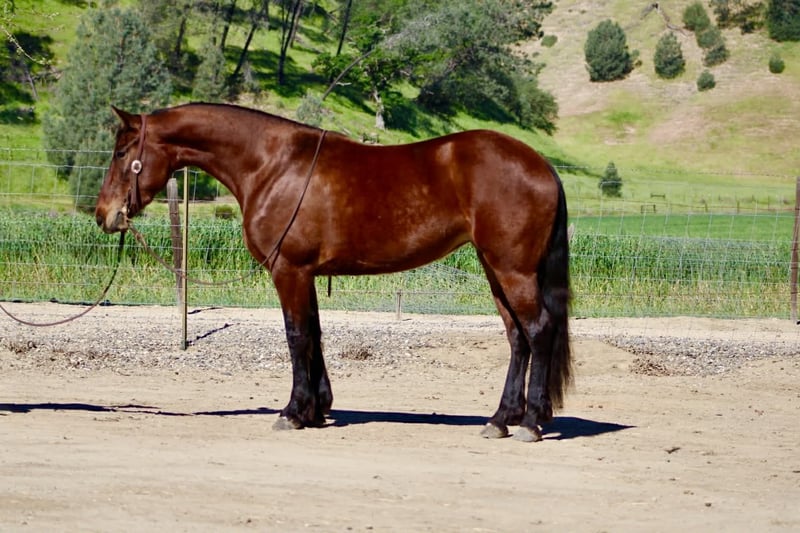"AVAILABLE ON ONLINE HORSE AUCTION AT www DOT PlatinumEquineAuction DOT com BIDDING OPEN NOW thru SUNDAY | APRIL 12TH! *Final price will be determined on auction site* CONSIGNOR CONTACT INFO: Longhorn Ranch 831-537-1915 LOCATION: Paicines, CA CALLIE 5-Year-Old Friesian Cross Mare • 15 Hands Callie is the kind of mare that’s already doing everything right—and doing it with the kind of mind everyone’s looking for. She’s honest, willing, and easy to ride with a soft, comfortable feel. She lopes nice circles, stops and backs with ease, and is a smooth traveler in all her gaits. She’s easy to guide, uncomplicated, and the kind you can get on and enjoy every single time. Callie has been exposed to obstacles and handles them with confidence. She knows where her feet are on the trail, crosses water and bridges quietly, and is the kind you can safely mosey down the road on and just enjoy the ride. She’s been out checking cows and has proven to be useful and level-headed in a working environment. She goes where you point her and keeps the same steady mindset. Around the barn, she’s just as easy. Good for the farrier, stands quietly in the stall, hauls great, and is simple to tack up. She is currently barefoot and doing great. No fuss, no nonsense—just a kind, straightforward mare to be around. With her natural presence and movement, Callie would also transition nicely into an English program, giving her even more versatility. Callie is a beautiful mare with a bright future ahead and a solid, safe feel that’s easy to appreciate. Longhorn Ranch Dina • 831-537-1915 Paicines, CA Shipping available anywhere in the U.S. with reputable haulers. Call or message to come meet Callie or set up a video chat.
