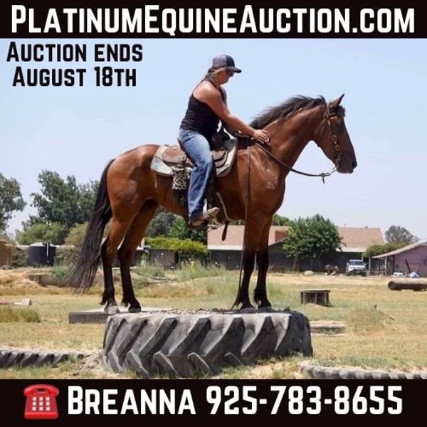 ONLINE AUCTION Place your bids at www.PlatinumEquineAuction.com Starting Bid $3500 Auction ends August 18th, 2024 Need a new saddle? Check out White Rock Saddles on our website or Facebook! This is an opportunity to own a nice 3/4 friesian mare. At 4 years old Bama is standing 15.1 but her head set makes her seem over 16hh. If you want a horse that will tackle a trail course, ride down the road and has a work horse mentality this is your gal! She goes anywhere and everywhere with no hesitation. Over logs, tarps, water, bridges, flags, tires, rough terrain, steep terrain. She does not bat an eye. She’s got a special look and move to her. She has a very nice trot and lope. Will do so bareback in a halter. Her breath taking elegance catches your eye. This breed is naturally a little more on the go, she is, and given her age she needs someone that wants to give her a job! She’s been a pleasure to ride, even tho she is not my typical pick of a horse I’ve had plenty of fun on her! She’d do great in parades, maybe drill? The opportunity is endless with her. She walk trots and lopes. Backs up, flexes. She can be a bit pushy on the ground, she thinks she’s a big dog! Not mean in any way. Ties great, good with feet( solid bare feet!), saddles good, bridles. Hops in the trailer and hauls good. She is a tiny bit toed out, hasn’t affected her in any way. Ears and bridle path shaved! Loves to be brushed, fly sprayed, and bathed. If you want a life long beauty queen Bama will be sure to fit perfectly in your barn. Please feel free to contact me any time. Cross B horses, Breeanna 925-783-8655 Located in Valley Springs, CA. ONLINE AUCTION Place your bids at www.PlatinumEquineAuction.com Starting Bid $3500 Auction ends August 18th, 2024 Need a new saddle? Check out White Rock Saddles on our website or Facebook!