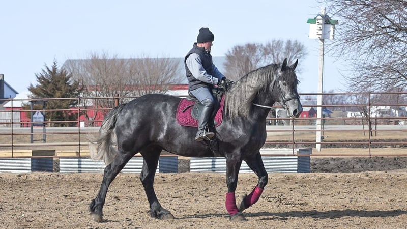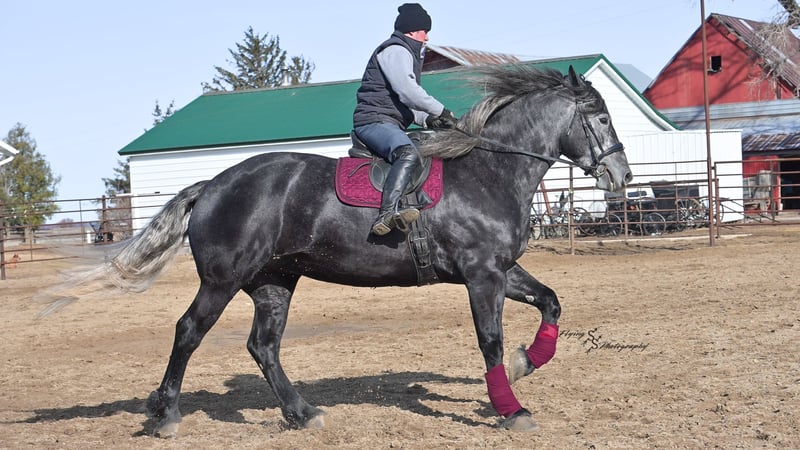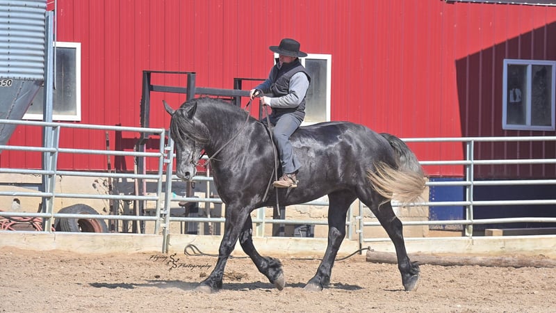 ONLINE AUCTION Place your bids at www.PlatinumEquineAuction.com Starting Bid $3500 Auction ends April 13th, 2025 Need a new saddle? Check out White Rock Saddles on our website or Facebook! If you’re looking for a show stopper, look no further! Kayla is a 5 year old registered Friesian Sporthorse. She is a knockout cross between a Friesian and a Percheron. Kayla stands 16.3 and has conformation that is as beautiful as her gray color. She rides well in the arena and outside on the trails. Kayla is traffic safe, and is used to being around other large and small livestock as well as pets and children! She will ride through an open field, down the trails, across water, through all obstacles, and down busy highways. Kayla will one-hand neck rein or plow rein, she is very soft in the bridle and leg cues. She knows how to side pass, pivot, lope correct circles picking up her leads, open and close gates, can be mounted from a mounting block or fence, and so much more! Kayla is easy to catch and does well in a stall or pasture setting, plus gets along well with other horses. She is quiet, gentle to be around, and so easy to handle. She easily picks up all of her feet, and is good for the farrier. Kayla could go so many directions, and has an excellent foundation to take her there. Whether you want to ride western, english, bareback, or simply trail ride, she is a great fit! Along with all of her experience in western riding, Kayla has been started in dressage and jumping. She is doing great with lead departures and laterals. Kayla moves beautifully, and definitely has a natural talent. She is not for a beginner, but is ready to go any direction in her training. Kayla is a very well rounded mare that will make someone a very high caliber horse! Even with time off, in the pasture or a stall, she rides off great. This outstanding mare has a solid foundation and stays honest whether she is being handled under saddle or on the ground. Kayla is current on Coggins, and also has a current PPE on file. If you have any questions, or would like to meet Kayla prior to the auction ending, please call Edwin Raber 319-283-0616 we are located in Fairbank, IA. ONLINE AUCTION Place your bids at www.PlatinumEquineAuction.com Starting Bid $3500 Auction ends April 13th, 2025 Need a new saddle? Check out White Rock Saddles on our website or Facebook!