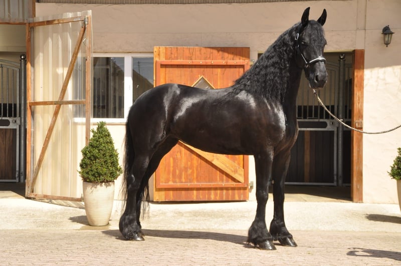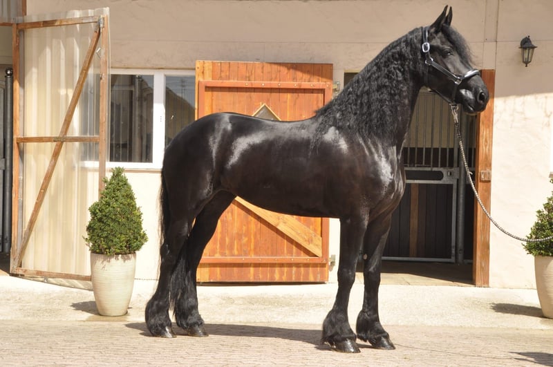 A very sweet and tall Friesian mare from the Netherlands with a beautiful, flowing mane! She has correct conformation, a stunning small head, and her temperament is simply a dream. She does not exhibit typical mare behavior at all, making her a very pleasant horse to handle. Extremely gentle in her interactions—she is calm and self-assured. Under saddle, she displays a pleasant willingness; she always works well with her rider and is fearless. She has been ridden in the three gaits. If you are looking for an extraordinary and unique mare, here she is. This year, she had her first foal, which was very uncomplicated. She was also a very loving mother. Please contact us exclusively by phone for inquiries.