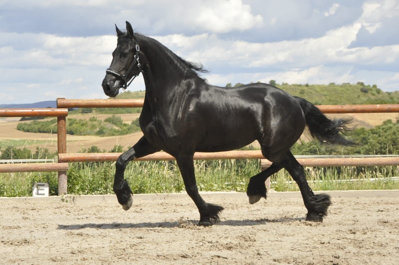 A very sweet and tall Friesian mare from the Netherlands, with a beautiful long mane and tail! She has correct conformation, a stunning small head, and her temperament is simply a dream. She does not exhibit typical mare behavior at all, making her a very pleasant horse to handle. Extremely gentle in her interactions—she is calm and self-assured. Under saddle, she demonstrates a pleasant willingness to work, always responds well, and is fearless. She has been ridden in the three gaits with good manners. If you are looking for an extraordinary and unique mare, here she is. She had her first foal this year, which was very uncomplicated. Additionally, she was a very loving and attentive mother. Please contact us exclusively by phone for inquiries.