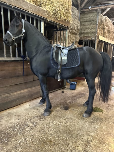 Beautiful luxurious mare with a colt foal by Tijmen. Slimly built, with a full tail and mane. Jet-black coat, noble head. She has had four foals and foals easily without assistance. Inbreeding coefficient 1.37, relatedness 18.8, mare line 049. She is leaving with a heavy heart due to the end of her breeding career. She is trained but has been standing idle for some time due to a foal at her side.