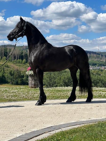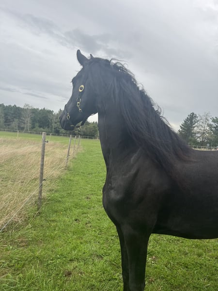 Geeske is very gentle under saddle and also performs excellently in harness. She has been backed and driven by Jelmer Chardon in the Netherlands. She has given birth to two wonderful foals, all very straightforward and in excellent health. She is a tall mare, always willing to participate in various activities, calm in handling, and very trusting. Please feel free to contact via WhatsApp or call at +49 151 214 050 24.