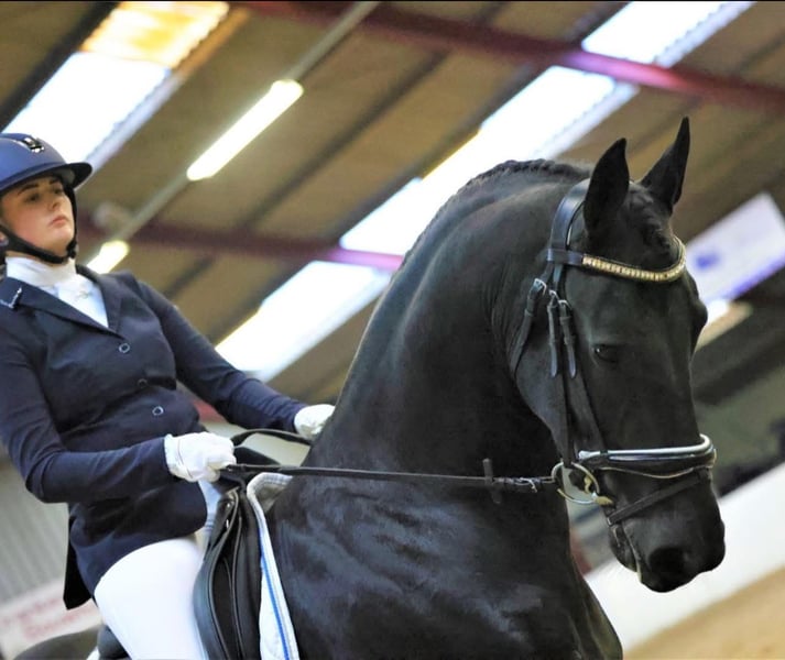 Lieve brave werkwillige merrie Griet van de marne Alwin 469 x Tsjalle 454 1,65m 01-05-2018 bijna 8 jaar. Klinisch en rontge (incl hals en rug) goedgekeurd Als veulen 2e premie & in 2021 Stamboek geworden. Braaf & werkwillig onder het zadel geen luie fries. Heeft 1 nakomeling bij ons gehad (makkelijk drachtig te krijgen) vrij van waterhoofd, dwerggroei en vosfactor Kan goed met andere paarden overweg. Mee gedaan aan de Friesian talent cup (3jarige) en paar keer mee geweest op oefen wedstrijd B waar ze mooie en hoge punten mee scoorde. Kan zowel alleen als met een groep op bosrit of langs de weg (alleen als je zeker bent en niet onzeker dan wordt Griet ook wat onzeker) Voor meer info of video stuur gerust een pb of 0684465674