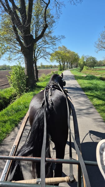 Elegante Friesen-Stute, geb. 2017, sucht neuen Besitzer Diese wunderschöne Rappstute ist eine echte Augenweide und überzeugt durch ihre beeindruckende Erscheinung sowie ihr freundliches Wesen. Mit einem Stockmaß von ca. 160 cm bietet sie die perfekte Größe für vielseitigen Einsatz und ist sowohl für Freizeitaktivitäten als auch für den täglichen Umgang bestens geeignet. Die Friese ist eine äußerst charakterstarke Rasse, bekannt für ihre elegante Erscheinung und ihr angenehmes Temperament. Sie ist sehr anhänglich manchmal aber etwas unsicher und benötigt deswegen eine sichere Person. Sie ist gesund, regelmäßig entwurmt und geimpft, und befindet sich in einem gepflegten Zustand. Die Stute ist vielseitig einsetzbar, ideal für ausgedehnte Ausritte, Spaziergänge im Gelände oder auch für die tägliche Freizeitgestaltung. Sie geht ohne probleme alleine ins Gelände. Wenn Sie auf der Suche nach einer zuverlässigen, charmanten Freizeitpartnerin sind, die mit ihrer Ausstrahlung und ihrem angenehmen Wesen begeistert, dann ist diese Friesen-Stute genau die richtige Wahl. Für weitere Informationen und einen persönlichen Eindruck stehe ich Ihnen gerne zur Verfügung.