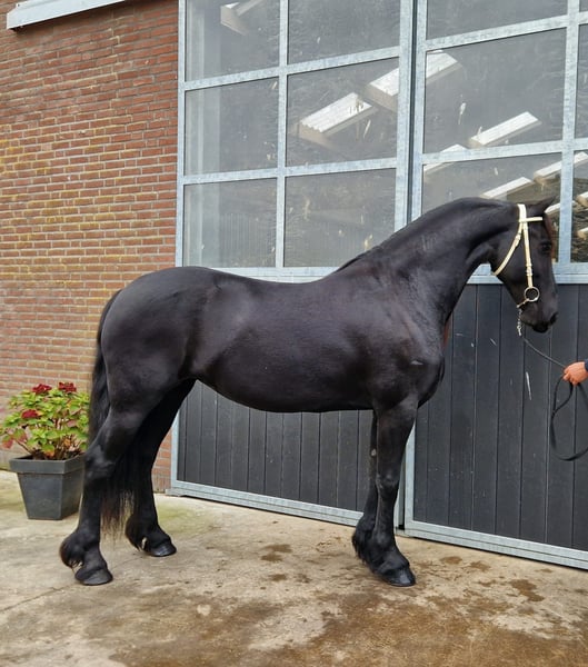 Te koop aangeboden: Prachtige 1e premie Stermerrie Dior (Alwin x Haitse) Geboren in 2017, stokmaat 1.63m Dior is een hele mooie Friese merrie met prachtige lange manen, een mooie lange hals en een vriendelijk hoofdje. Ze kan goed stappen en draaft met een sterk gebruik van het achterbeen. Ze werd op de keuring dan ook niet voor niets Ster verklaard met een 1e premie! Ze is recreatief gereden onder het zadel, is mak en betrouwbaar en laat zich fijn bewerken. Echt een merrie met een super lief karakter. Dior komt uit een super sterke en bekende moederlijn. Haar moeder is Kroon AA, haar grootmoeder is zelfs Kroon Pref. Prest., de volgende merrie is Model Pref. Prest. en de 4e merrie in rij is Ster en Pref. Het gaat hier om stam 128, waaruit ook bekende hengsten als Leffert 306 en Ulbert 391 kwamen. Ze is zelf een dochter van de Preferente tophengst Alwin 469, haar moeder stamde van de Grand-Prix hengst Haitse 425, vervolgens zien we Feitse 293 Pref. en daarvoor zit Naen 264 Pref. Een pedigree met 4 generaties tophengsten! Voor de liefhebber die op zoek is naar een mooie Friese merrie met een super karakter én een geweldige afstamming, om mee gaan te fokken en lekker te rijden, is Dior een hele geschikte kandidaat!! Correct en gezond paard, alle keuringen zijn toegestaan k.k. Voor meer info aub even BELLEN naar +31646762880