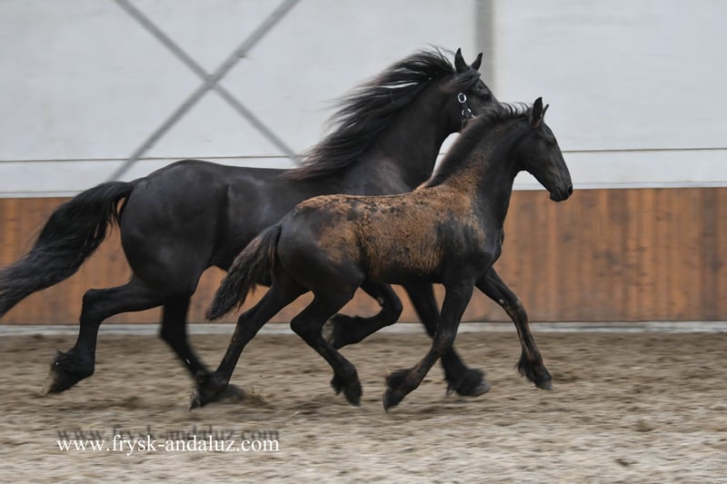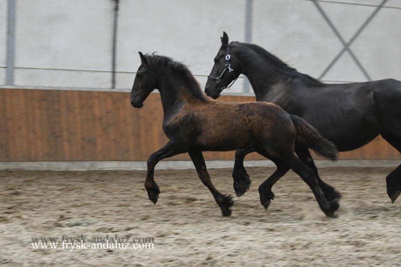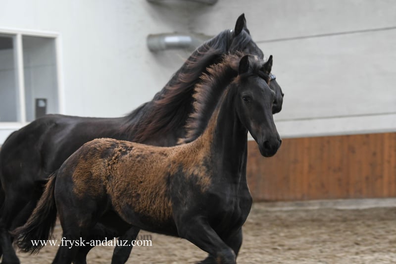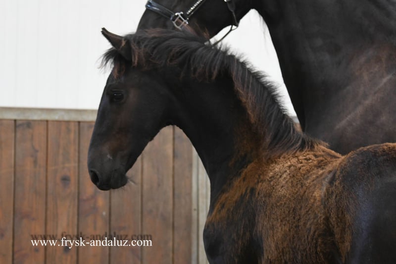 Femme Fatale van Zomerstaete is a beautiful and well-proportioned filly from the outstanding sport stallion Jeroen 535 Sport-Elite. She is out of a Ster mare named Ayu van Zomerstaete. This large modern mare is a daughter of Hessel 480 Sport from a Ster+Preferente mare by Harmen 424 Sport x Anton 343 Sport+Preferent. The lineage includes Ster+3* / Ster+3* / Model+Preferent / Model+Preferent / Model+Preferent / Ster+Preferent – Mare line 035. Femme is an affectionate filly and has a low inbreeding percentage of only 0.59%. She is an ideal mare for inspections, sport, and recreation. https://www.frysk-andaluz.com/nl/paard/femme-fatale/