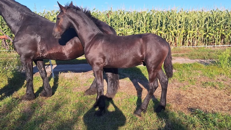 Hello, For sale is a beautiful Friesian colt, Febus Quercus, born in 2025. Full pedigree, registered with the Dutch KFPS. Sire: Alger 522 AAA Dam: Chimera MG from Moreny by Hjalte vom Hofgut Grunenkamp vb ster AAA Beautiful movement and great conformation.
