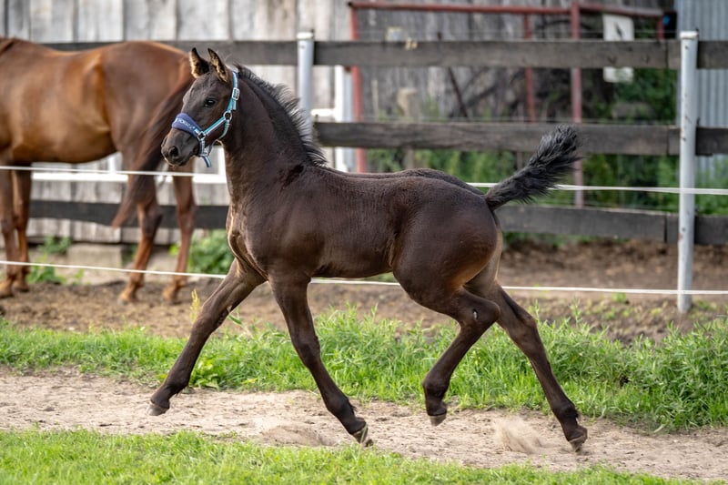 À vendre, jument frisonne à sevrer en novembre. Documents KFPS, père Jehannes 484 x Beart 411. La jument donne les jambes, elle est attachée et conduite en longe. N'hésitez pas à me contacter.