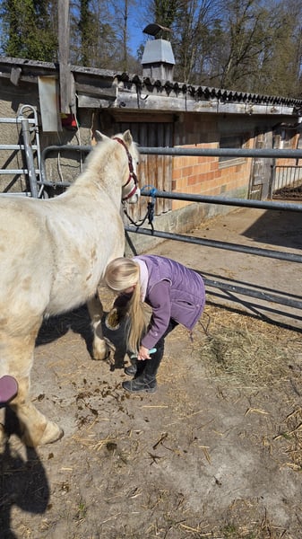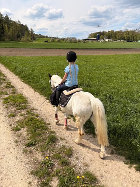 Prinz ist ein wunderschöner, 18-jähriger Schimmelwallach mit einem lieben und zuverlässigen Charakter. Früher lief er in einer Reitschule und wurde bei uns hauptsächlich im Gelände von meiner 6-jährigen Tochter geritten. Auch beim Muki-/Vaki-Reiten macht er brav mit und bringt Anfänger sicher von A nach B. Auf dem Reitplatz zeigt sich Prinz ebenfalls brav, benötigt dort jedoch eine konsequente und sichere Führung. Im Gelände ist er ein echter Verlasspartner und bereitet Gross und Klein viel Freude. Prinz ist sehr sozial und herdenverträglich. Aktuell lebt er mit unseren Shettys im Offenstall, was er sehr schätzt. Er ist lange Weidezeiten gewohnt, vorne beschlagen und hinten barhuf. Da meine Tochter sich nun vermehrt dem Springsport widmen möchte, haben wir uns schweren Herzens entschieden, für Prinz ein neues Zuhause zu suchen. Wir wünschen uns für ihn einen liebevollen Endplatz bei geduldigen Menschen oder einer netten Familie mit Kindern, die mit ihm noch viele schöne Ausritte geniessen möchten. Prinz ist nicht turniergeeignet, da ihn solche Situationen stressen. Daher suchen wir bewusst einen ruhigen und passenden Platz, an dem sein Wohl an erster Stelle steht. Platz vor Preis – kein Notverkauf.