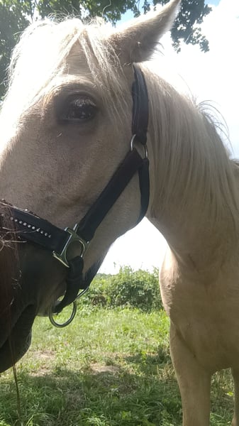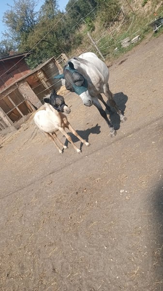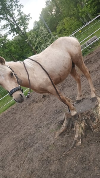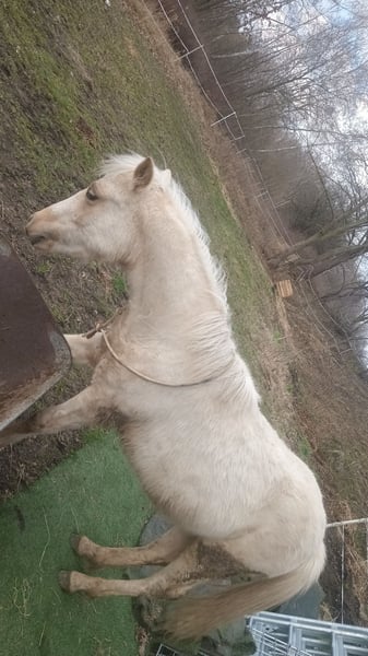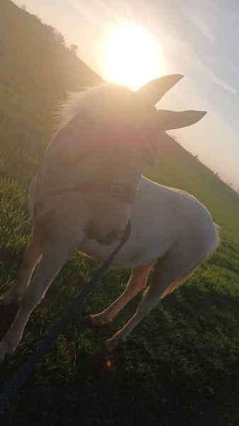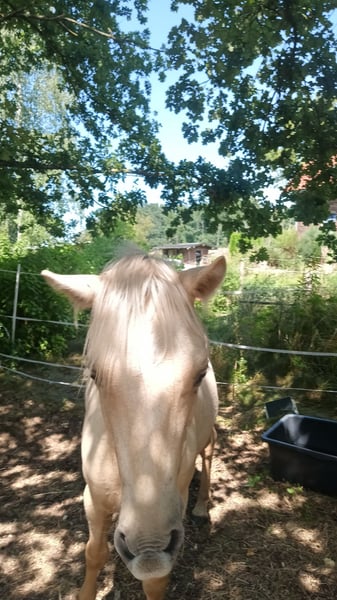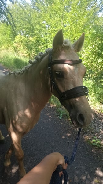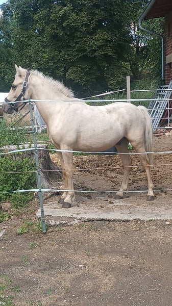 Unser Ponywallach Herkules in wunderschöner Palomino-Farbe wurde am 16.04.2024 geboren und ist aktuell ca. 120 cm groß. Er besitzt selbstverständlich auch einen Pass. Er ist ein total lieber, neugieriger kleiner Kerl, der super gerne Neues lernt – manchmal etwas stur, aber immer freundlich und ehrlich. Er steht im Offenstall und lebt dort in einer gemischten Herde mit insgesamt fünf Pferden. Das Zusammenleben klappt problemlos, er ist sozialverträglich und gut integriert. Er kennt das Führen, Putzen, Hufe geben und erste Übungen an der Longe. Spazieren klappt ebenfalls wunderbar, er läuft entspannt und zuverlässig mit. Lässt sich überall anfassen und liebt es, wenn man ihn am Hals krault. ;) Ein echter Hingucker mit Herz, der sich in liebevollen Händen sicher zu einem tollen Pony entwickeln wird.