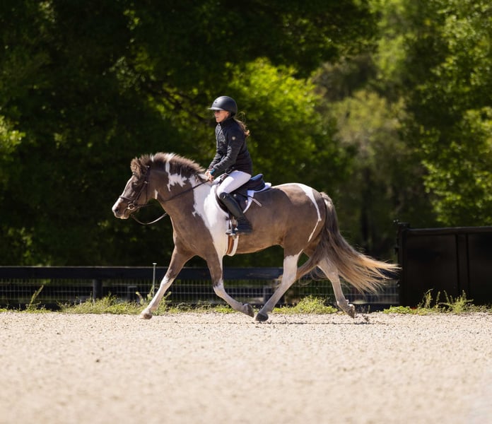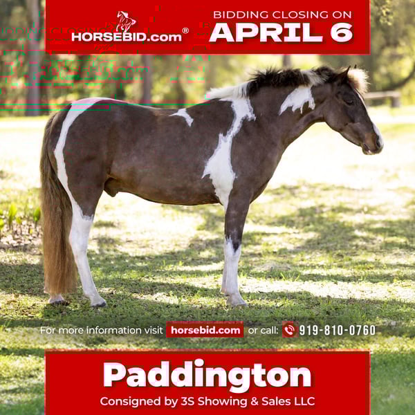 🌟𝑨𝒑𝒓𝒊𝒍 𝐀𝐋𝐋 𝐒𝐓𝐀𝐑 𝐋𝐈𝐍𝐄𝐔𝐏🌟 Happening now thru MONDAY | APRIL 6th - Available EXCLUSIVELY on HorseBid's website! For more details and to register visit: www.Horsebid.com CONSIGNOR CONTACT: 3S Showing & Sales LLC 919-810-0760 LOCATION: Ocala, FL BREED: Welsh cross REGISTERED: No COLOR: Paint HEIGHT: 13 AGE: 4 GENDER: Gelding Paddington is a 4 year-old, 13 hand Welsh × Paint pony who is absolutely darling and cute as a button. He is a chunky little guy with a solid build, an adorable head, and the kind of presence that makes people fall in love instantly. Paddington has been out on plenty of trail rides and also loves to pull a carriage. He has a nice trot and a phenomenal uphill, comfortable canter. In fact, I cannot emphasize enough just how comfortable his gaits are — he has the best canter. He has been lightly started over fences and is already showing great potential. He also handles all of the obstacles, including pool noodles and the teeter-totter bridge, with ease. On top of all of that, he has a very loving, in your pocket personality. Paddington has all the right pieces to be a top show pony in a hunter program and could make a wonderful Pony Finals prospect. While he has only jumped a handful of times and is still a bit green in the more formal aspects of the hunter/jumper world, his natural ability is undeniable. He has started lead changes each direction. Whether you ride him once a week or every day, he is the same dependable pony out on the trail. He recently went to his first horse show and stepped right off the trailer to win the walk-trot. He is safe and easy enough for kids to hop on bareback in a halter and ride all around the farm. Paddington has even been ridden into our local Tractor Supply, where he was a crowd favorite. Did we mention, we’ve ridden him inside our house?!?! Yes, that’s right! He is a certified “House Pony”! Our smallest rider, an 8 year old, loves riding this sweet pony and confidently trots and canters him all around the farm. She is able to catch him from the field, tack him up, and ride him entirely on her own without assistance, which speaks volumes about his temperament. He also loads, ties, stand tied to the trailer and cross ties well. Don’t miss out on Paddington! You’ll have the cutest pony in the barn!