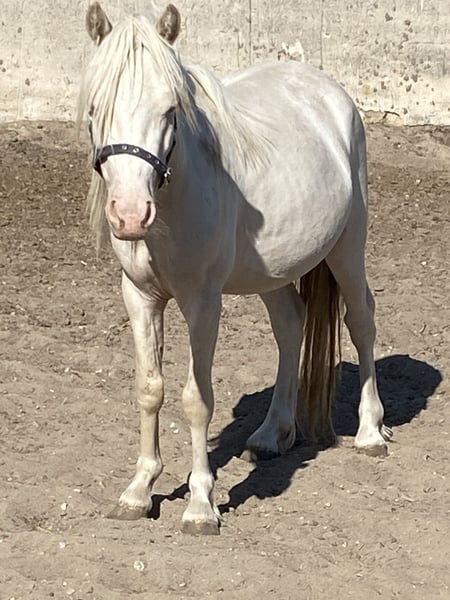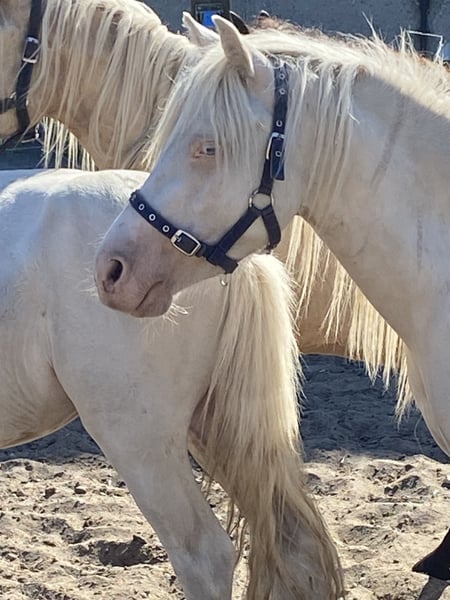For sale is this beautiful Welsh-A stallion, born in 2023. This very attractive Cremello not only impresses with his striking color but also with his friendly and open nature. With appropriate training, he is excellently suited for leisure and competition sports and has the potential to become a loyal companion for young riders. The stallion is well-socialized and has already gained initial experience in handling with people. THE STATED PRICE IS A STARTING BID! The offered pony is for sale due to a veterinary authority-initiated seizure. An equine passport is available. If a purchase examination is desired, this can be arranged by the interested buyer and conducted at their own expense. After the purchase of the horse, transport must be organized independently and at the buyer's own cost. The horse is sold excluding any warranty. The seller assumes no guarantee or liability for specific characteristics or uses. Please submit a written bid including your name, address, and location of care. After submitting a corresponding bid, the veterinary office will contact the interested buyer. The allocation will be made to the highest bid after checking the future care conditions. veterinaeramt@lkee.de PLEASE NOTE THAT ONLY WRITTEN BIDS STATING THE BID AMOUNT AS WELL AS THE NAME AND RESIDENTIAL ADDRESS WILL BE CONSIDERED! AFTER REVIEWING THE BIDS, CONTACT WILL BE MADE WITH THE BUYERS AND AN APPOINTMENT FOR VIEWING WILL BE ARRANGED.