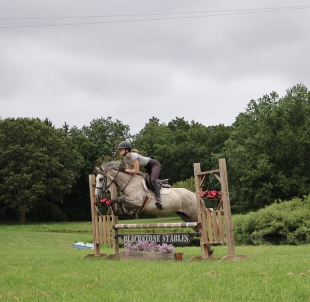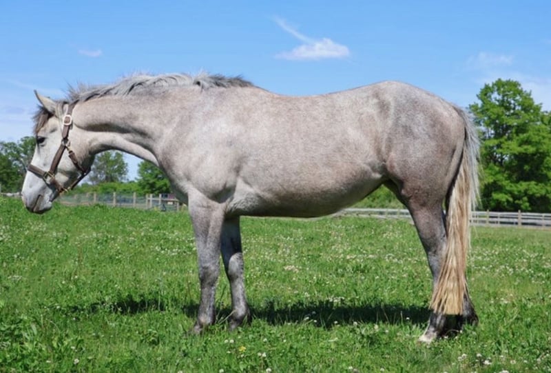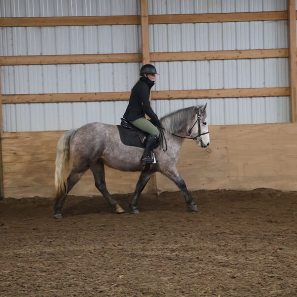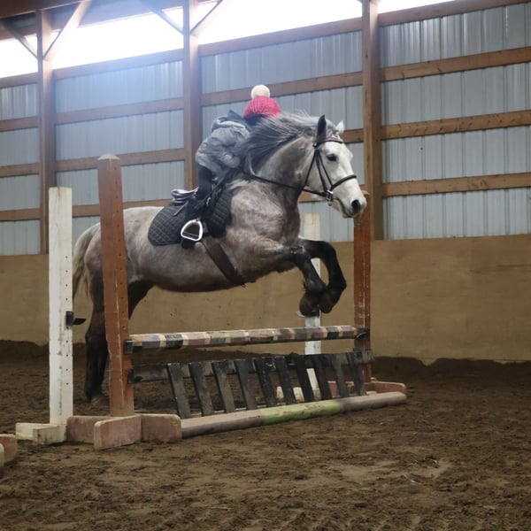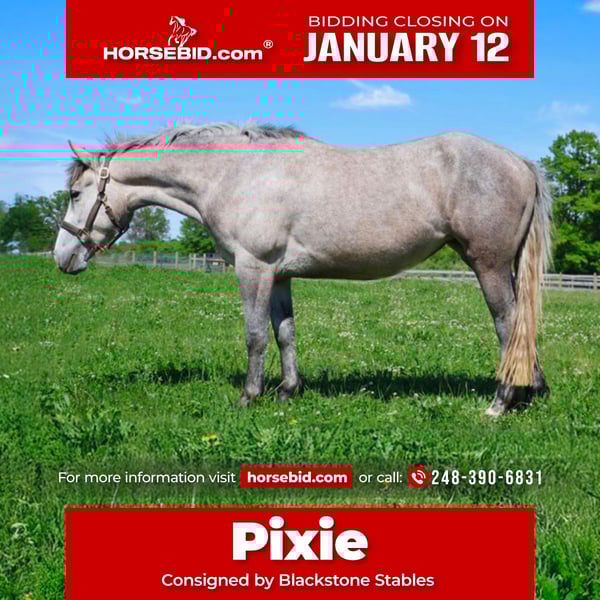 ♦️𝐍𝐄𝐖 𝐘𝐄𝐀𝐑'𝐒 𝑬𝒙𝒕𝒓𝒂𝒗𝒂𝒈𝒂𝒏𝒛𝒂♦️ Happening now thru MONDAY | JANUARY 12th - Available EXCLUSIVELY on HorseBid's website! For more details and to register visit: www.Horsebid.com CONSIGNOR CONTACT: Blackstone Stables 248-390-6831 LOCATION: Howell, MI BREED: Welsh Quarter Cross REGISTERED: No REGISTERED NAME: Pixie COLOR: Dapple Grey HEIGHT: 14 AGE: 5 GENDER: Mare We would like to introduce Pixie! This adorable dappled grey mare stands 14hh at 5 yo, with a big body. She is a Welsh Quarter X. Pixie has beautiful conformation and a mind to match. She is an elegant mover and is very light on her feet. Pixie is a total doll on the ground and plays well with others in turn out. Pixie walk trot and canters with ease, she’s knows her leads, will do flying changes when asked and her breaks are good. She has seen the trails, woods, water and wildlife. She’s coursing around at 2 ft 6 with plenty of scope to go higher. Pixie is quiet enough to tote around a beginner as well. She jumps in beautiful form! Pixie has been showing over fences and is one who can steep into a new environment with out batting an eye. She is excellent with chaos, crowds and being in a new environment. She loves the kiddos and is a very forgiving type of ride. She has easy changes that will be auto in no time! Pixie has participated in Halloween costume parades and has carried the flag. Pixie has been over bridges tarps, pool noodles and bridges with total ease. She is currently working in an English lesson program and she’s a favorite among the kids. Give us a call to meet her. Pixie lives in Howell, MI 48855 please give me a call or text to meet her 248-390-6831!