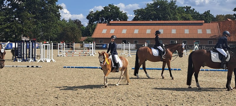 Wir verkaufen schweren Herzens unseren kleinen Champion. Sinatra war 2024 Seriensieger in Dressur und Springprüfungen. Ebenso hat er als leistungsstärkstes Pony in der Talentförderserie gewonnen. Leider wachsen Ponys nicht mit. Nur aus diesem Grund suchen wir für ihn eine erfahrene, sportorientierte liebevolle Familie, die dieses tolle Pony zu schätzen wissen. Letztes Wochenende glänzte er wieder auf dem Turnier. Mit einer 8,0 gewann er erneut von drei Starts zwei Prüfungen. Er wurde bisher in Dressur, Zeit oder Stilspringprüfungen auf WBO/ E Basis vorgestellt. Dabei ist es ihm egal ob in der Halle oder auf dem grossen Aussenplatz geritten wird. Er geht an jeder Position in der Abteilung oder mutig auch alleine prima in einer Prüfung. Dabei ist er wenig Umwelt orientiert und leistet auf jedem Turnier erfolgreich ab. Wir suchen für Sinatra eine kleine talentierte, ehrgeizige Reiterin, die schon recht sicher in ihrem Sitz und Hilfegebung ist. Sinatra liebt das Springreiten. Stehenbleiben oder dran vorbei laufen sind absolute Fremdwörter. Natürlich ist Sinatra schmiede und verladefromm und 100 Prozent gesund. Er war bei uns in der ganzen Zeit noch nicht einmal krank und wird bei Verkauf mit einer kleinen Aku übergeben. Gerne verschicken wir weitere Videos per WhatsApp 01794883115. Lg